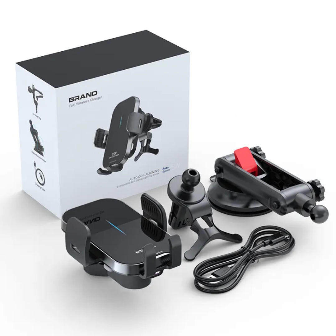 出风口夹 + 数据线 + 吸盘支架 (可选)