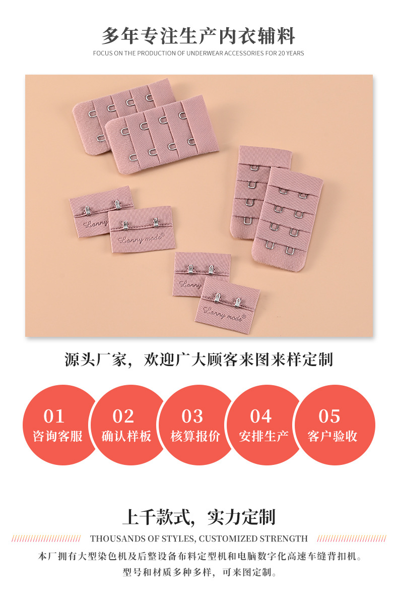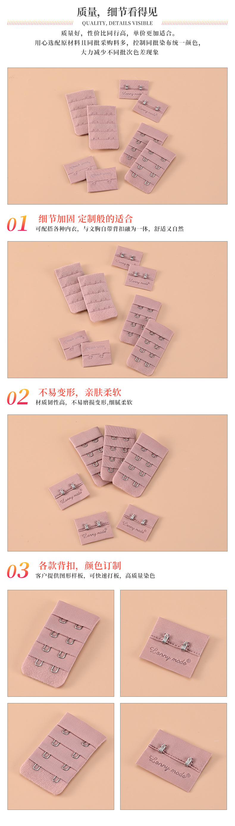 加工定制四排两扣内衣加长扣尼龙毛底暗线内衣调节扣文胸后背加长