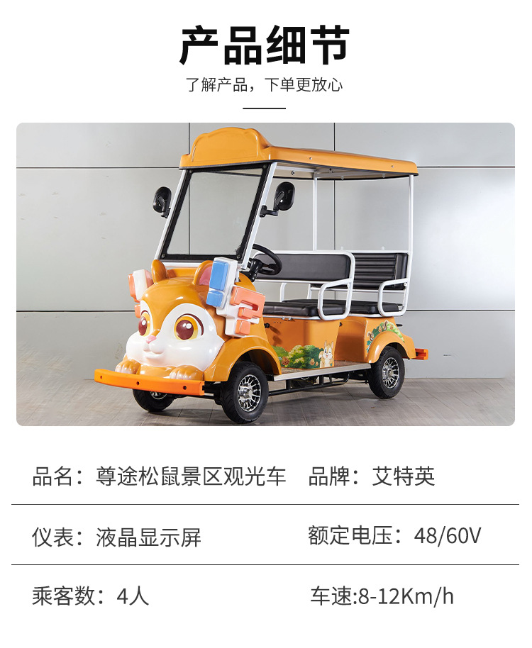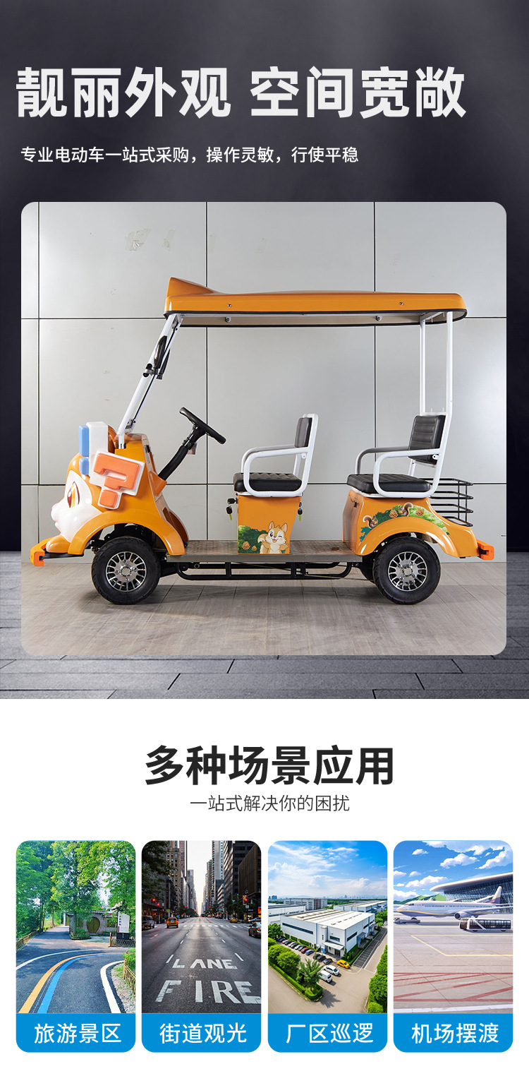 定 制4人座卡通旅游景区非公路观光车公园游乐场亲子电动车接驳车