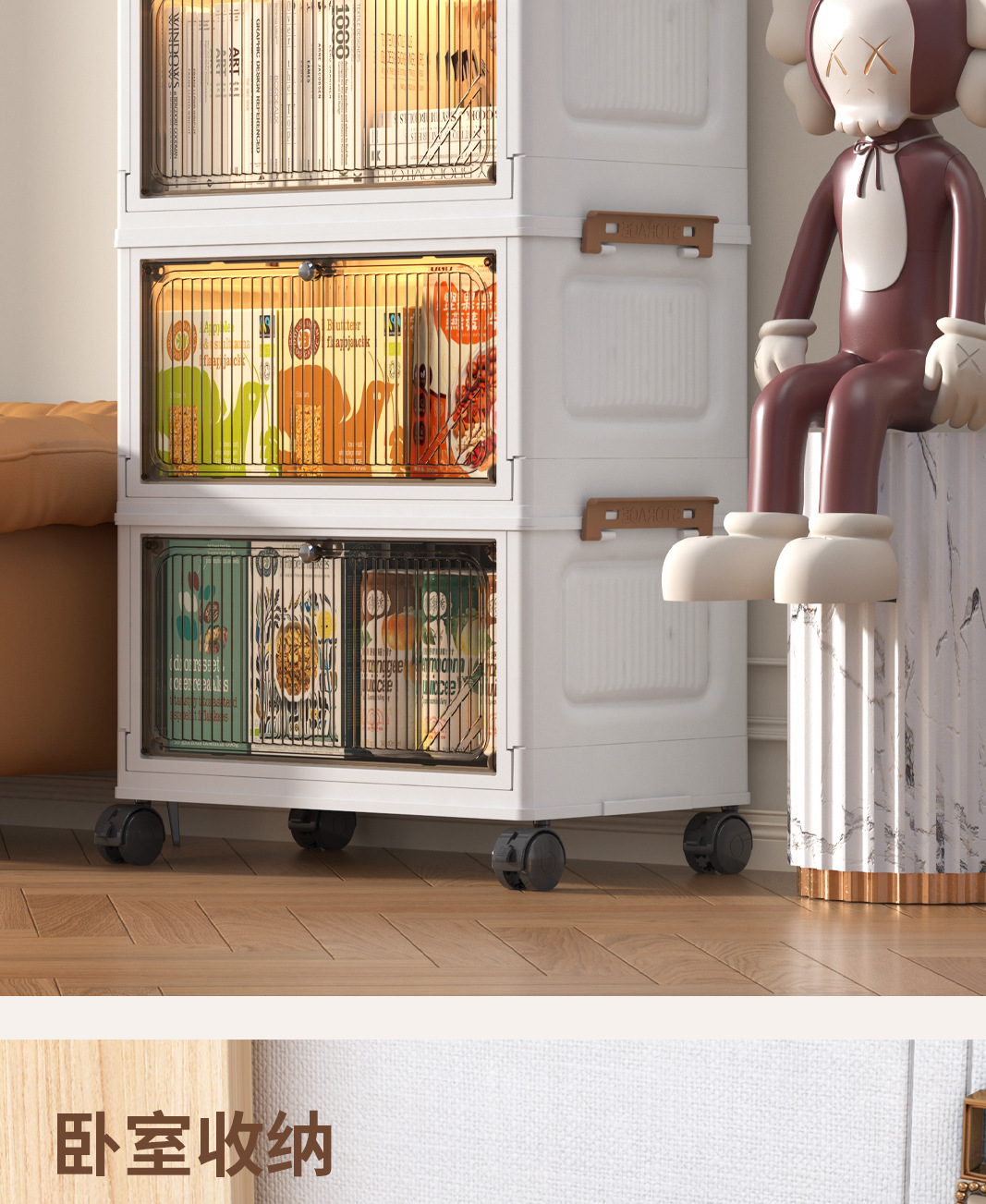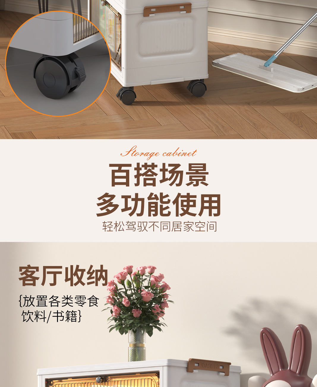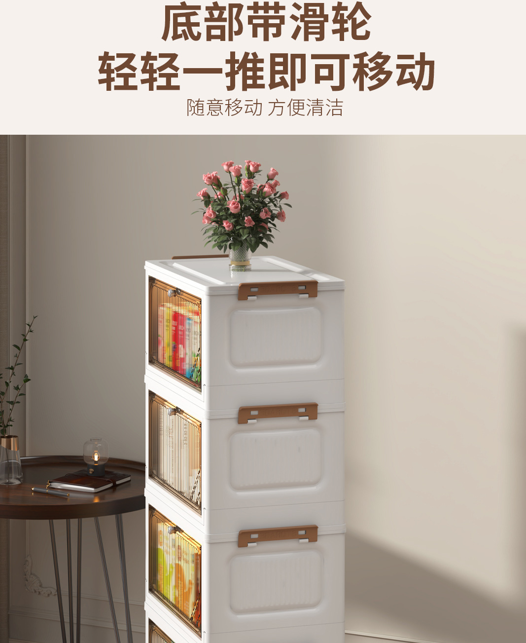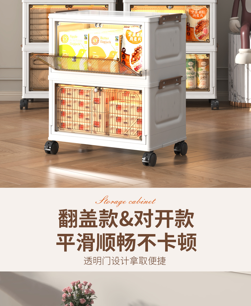 免安装折叠收纳柜客厅零食家用柜置物柜宝宝衣服收纳箱带轮储物柜