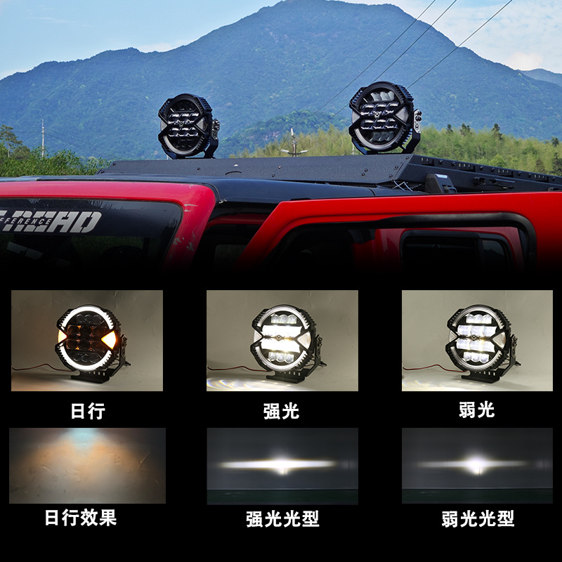 新款工作灯9寸LED货车卡车前杠车顶改装加装LED圆形远近光射灯