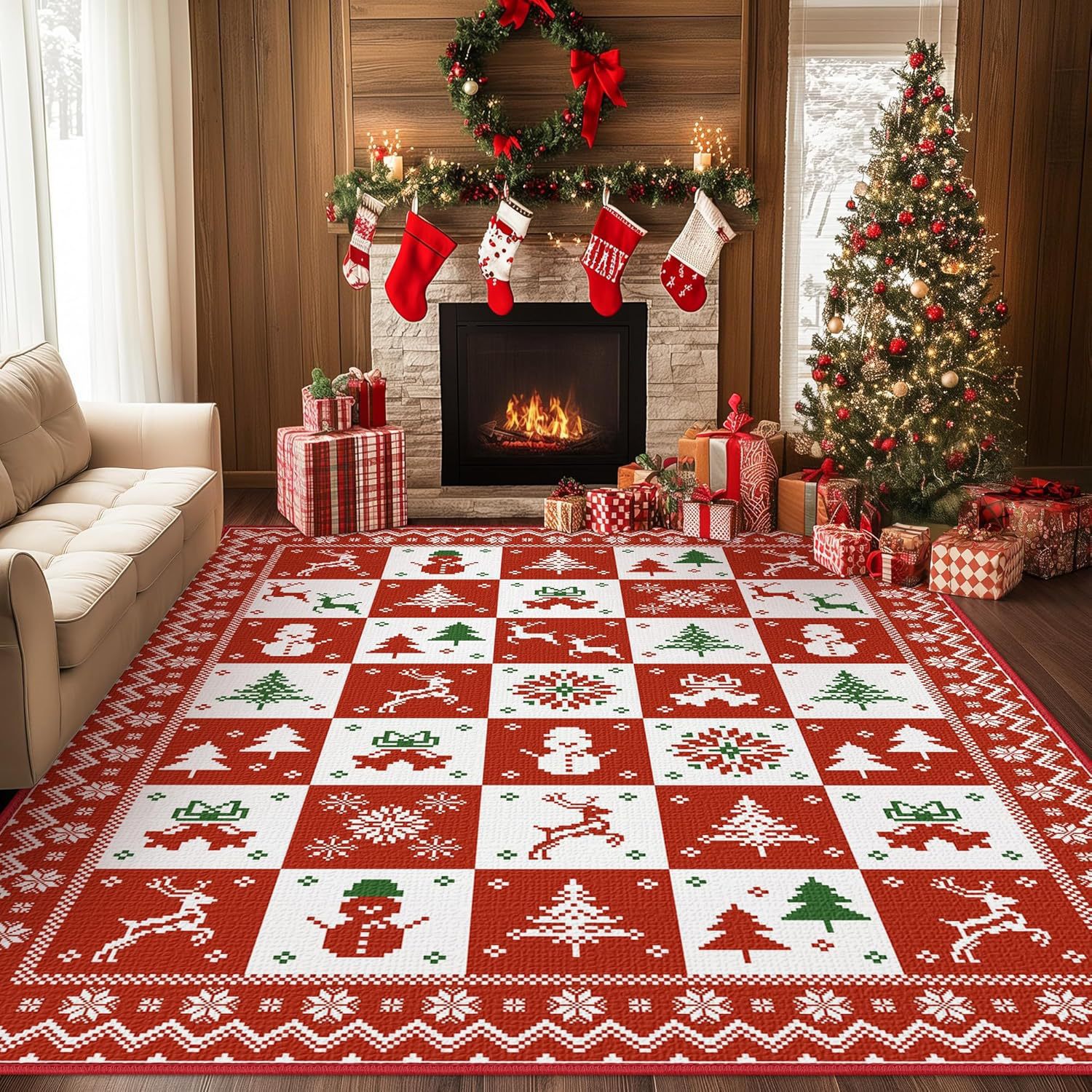 跨境圣诞节地毯客厅卧室沙发大面积满铺地垫耐脏易打理床边毯