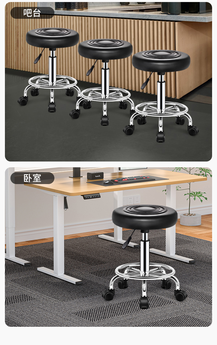 吧台椅子升降美容凳旋转滑轮大工凳子圆凳理发店美发店靠背酒吧椅