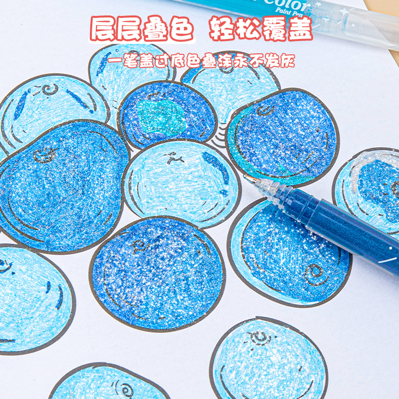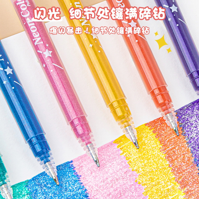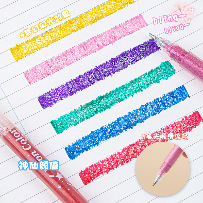 儿童闪光笔水彩笔珠光彩色啫喱笔高颜值笔儿童涂鸦手账荧光笔套装