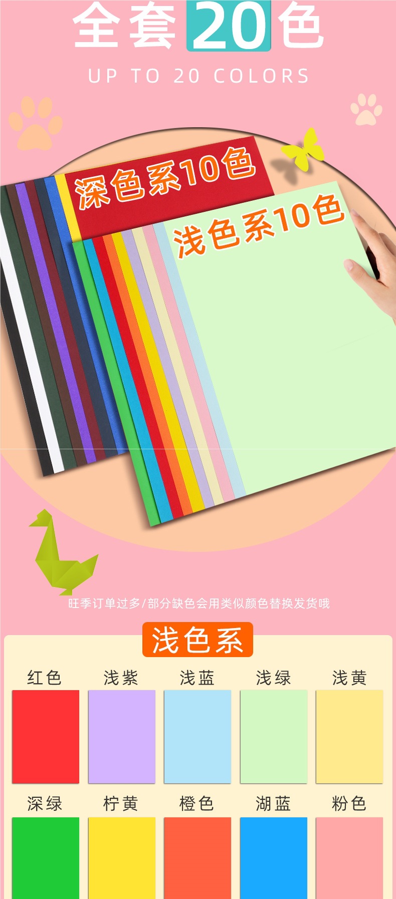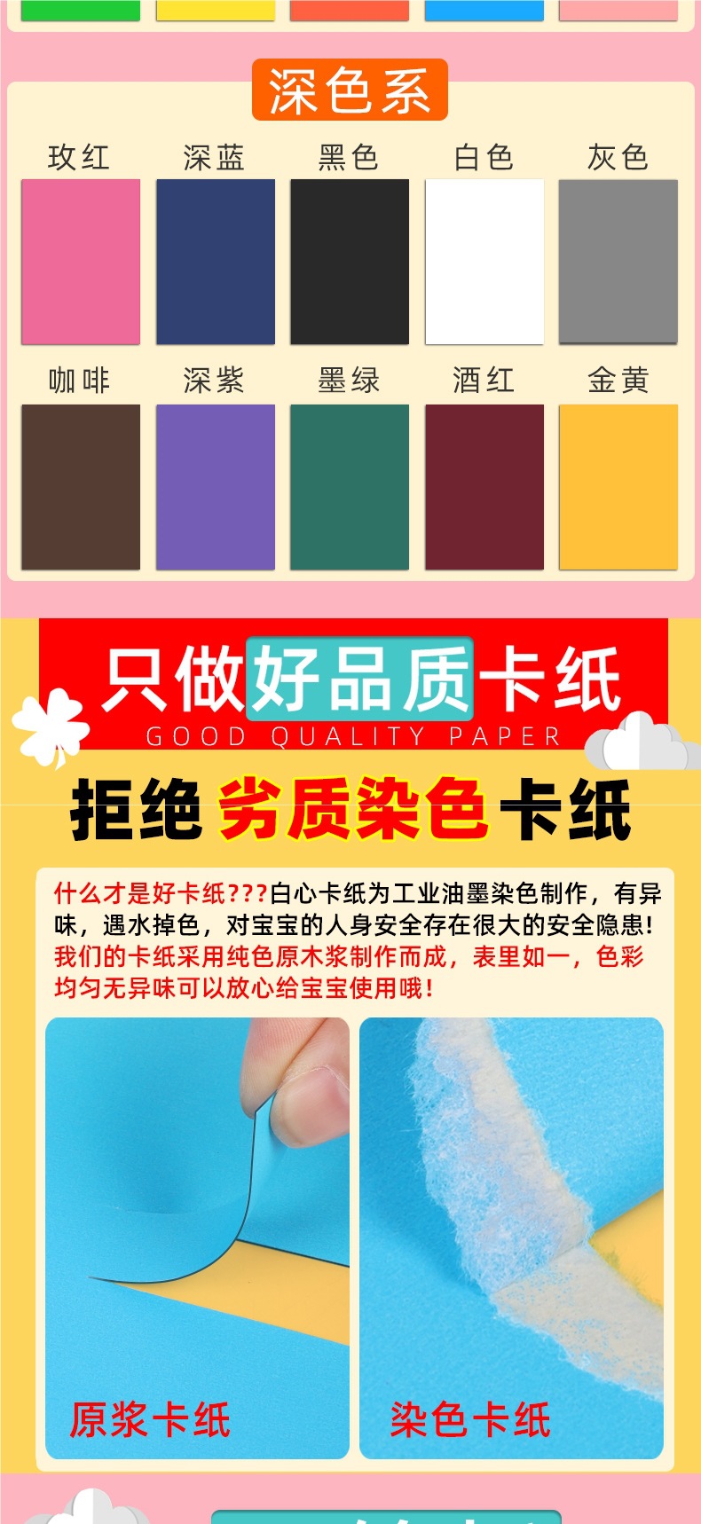 a4儿童彩色手工硬卡纸加厚30色幼儿园diy彩纸折纸课大红色黑色白