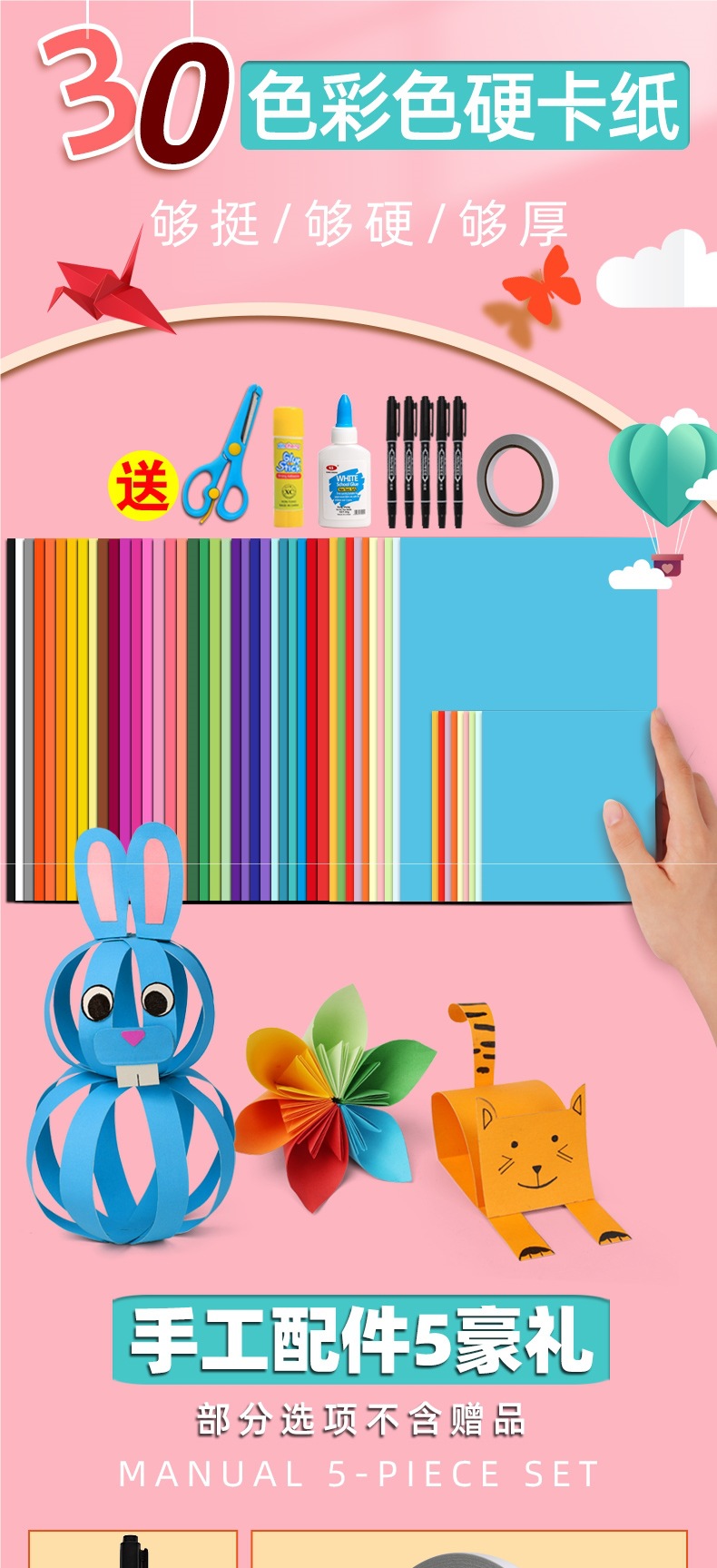 儿童手工硬卡纸 A4加厚 三十色套装 幼儿园DIY 彩色卡纸