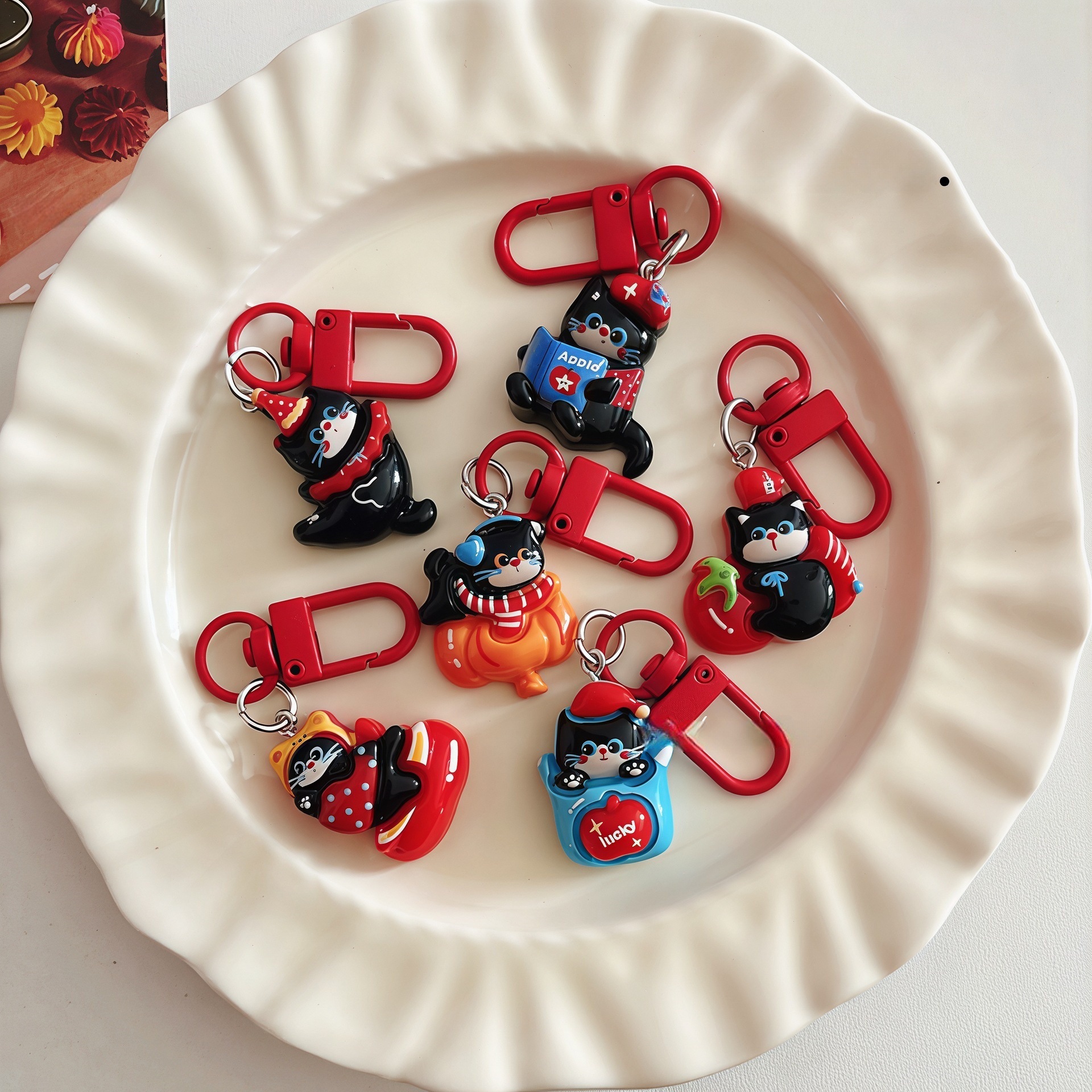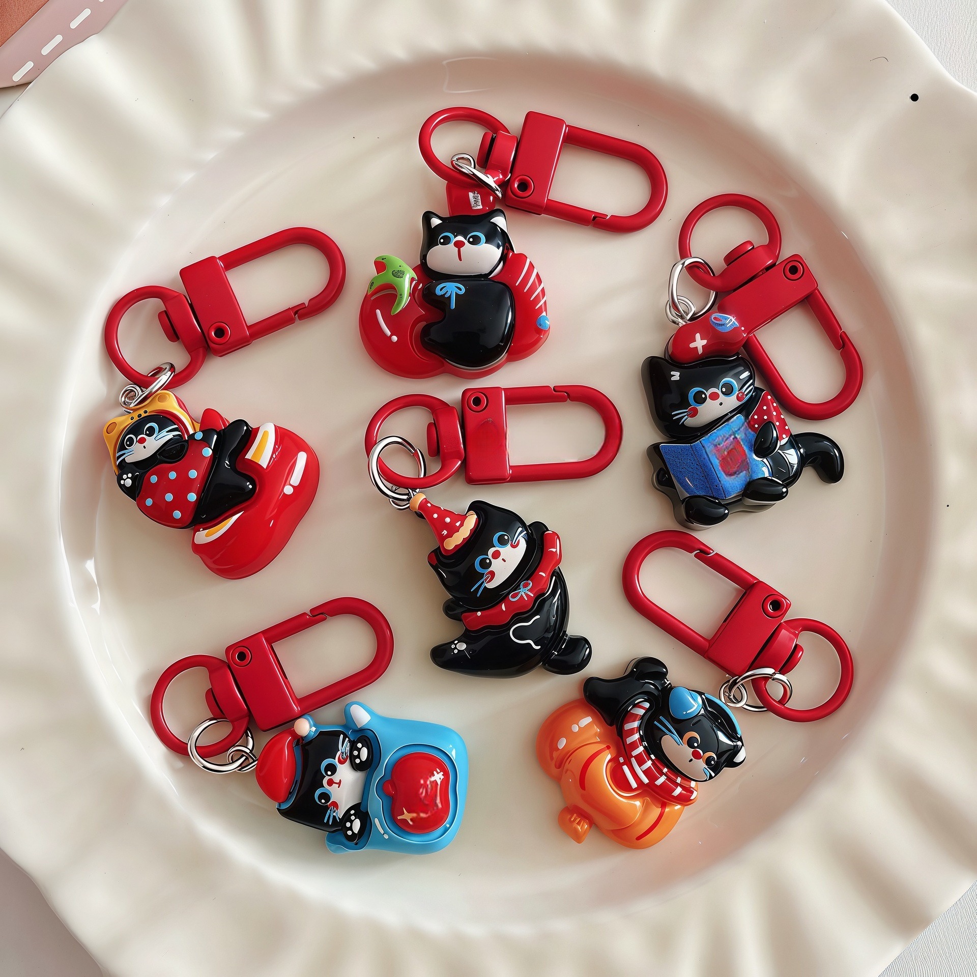树脂卡通可爱新年好运暴富猫钥匙扣挂件可爱百搭少女包包礼物批发