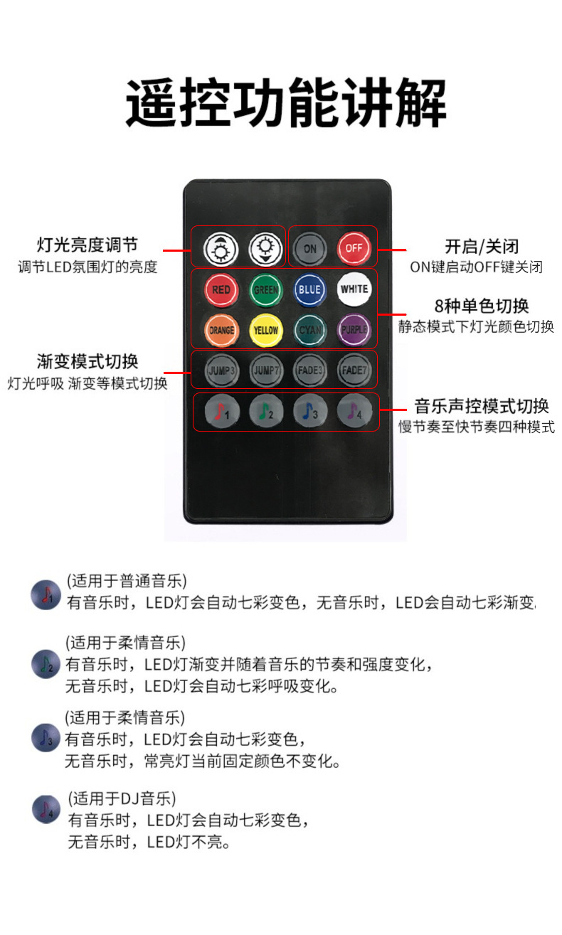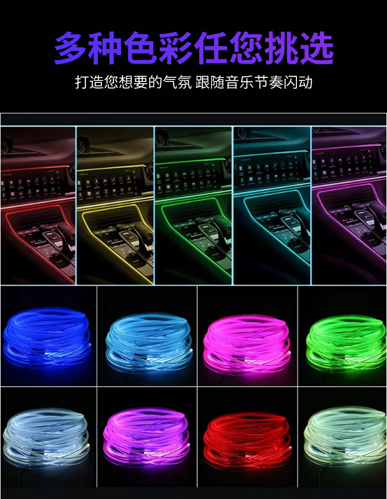 USB车载声控汽车氛围灯导光条声控内饰灯车内七彩光纤氛围灯厂家