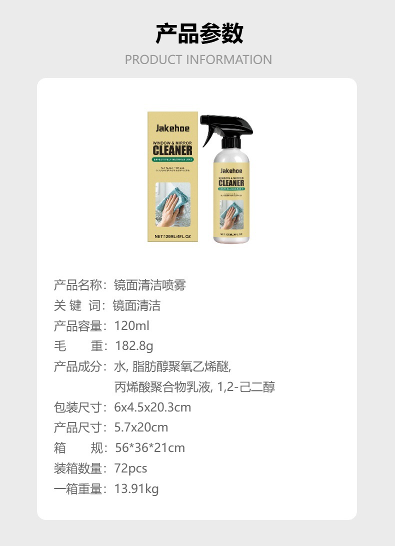 JAKEHOE 镜面清洁喷雾 多用途有效去污适用于常见玻璃镜面表面,批发价,价格:8,厂家直销,JAKEHOE 镜面清洁喷雾 多用途有效去污适用于常见玻璃镜面表面,免费拿样。