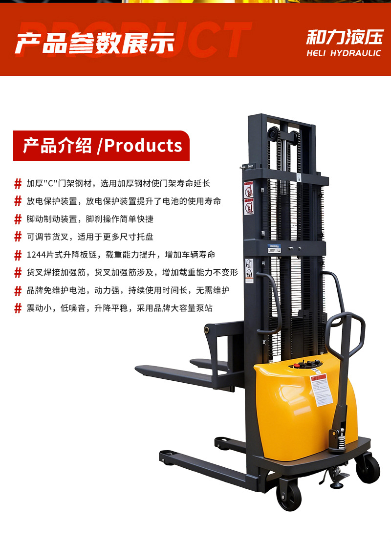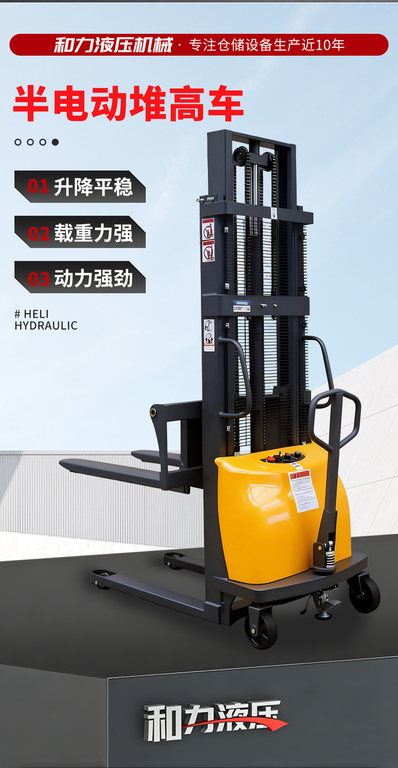 推荐理由:半电动堆高车1.5吨2吨电动叉车半自动堆高车托盘堆垛车液压升降车