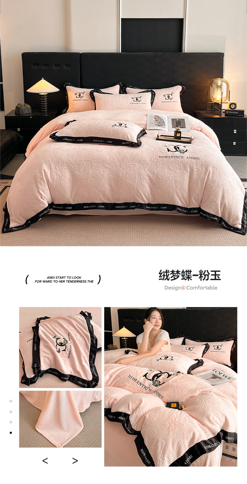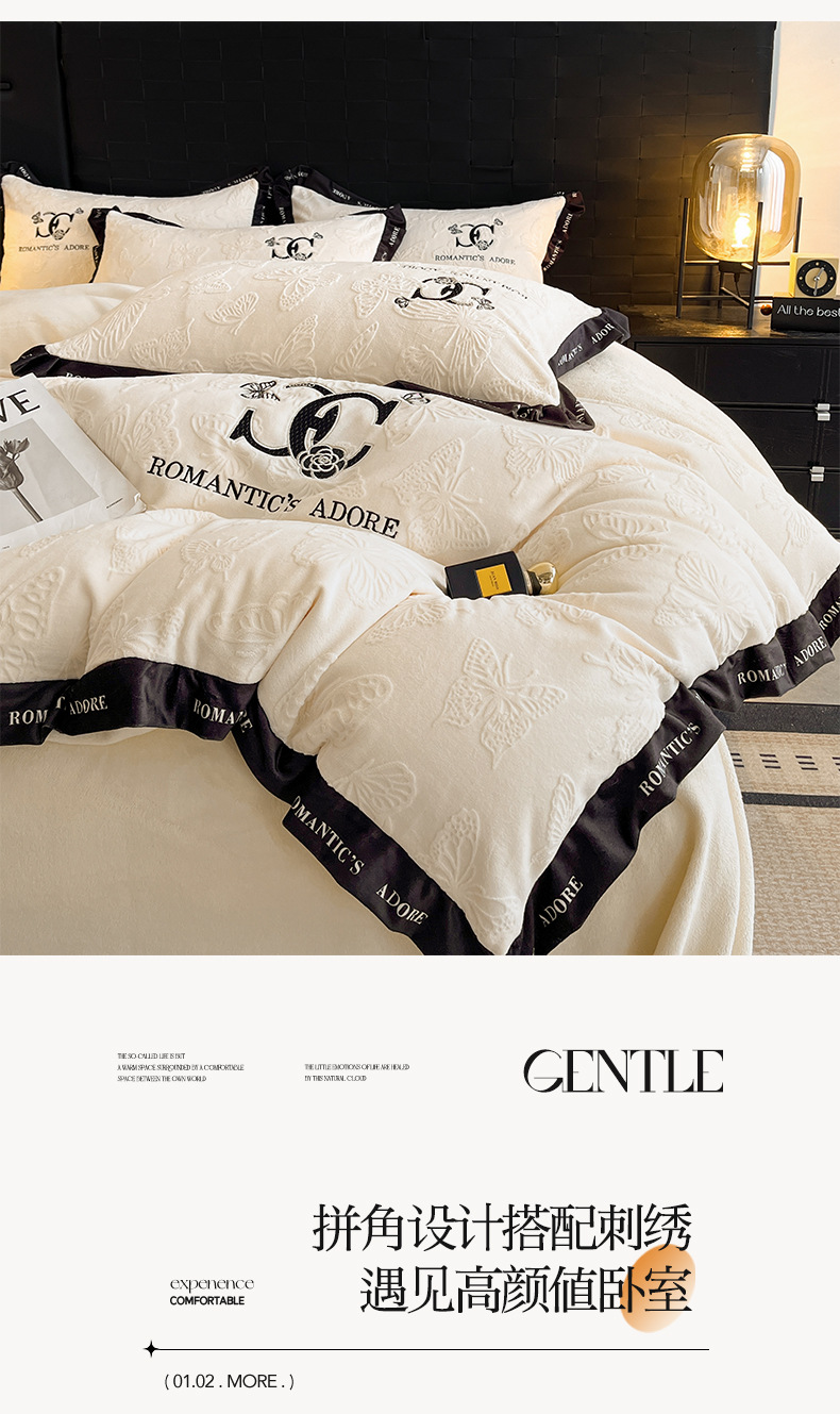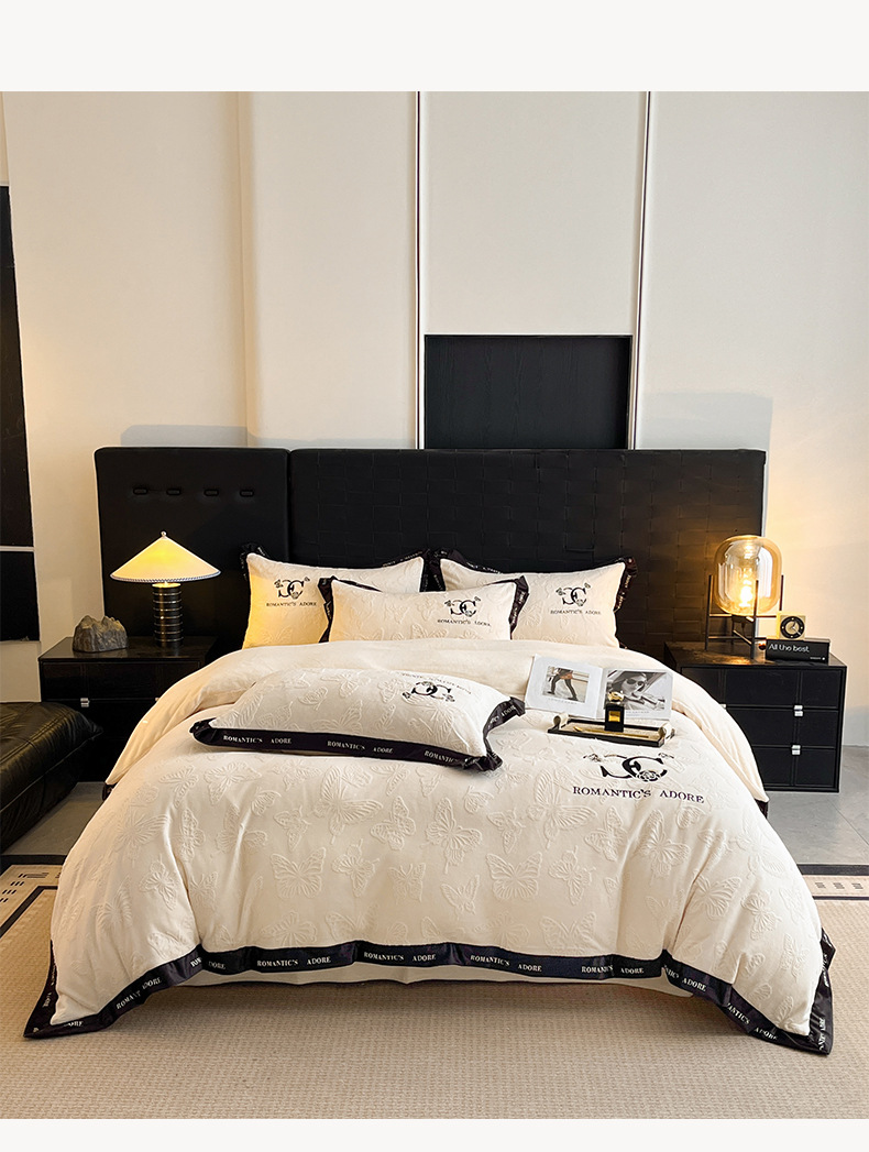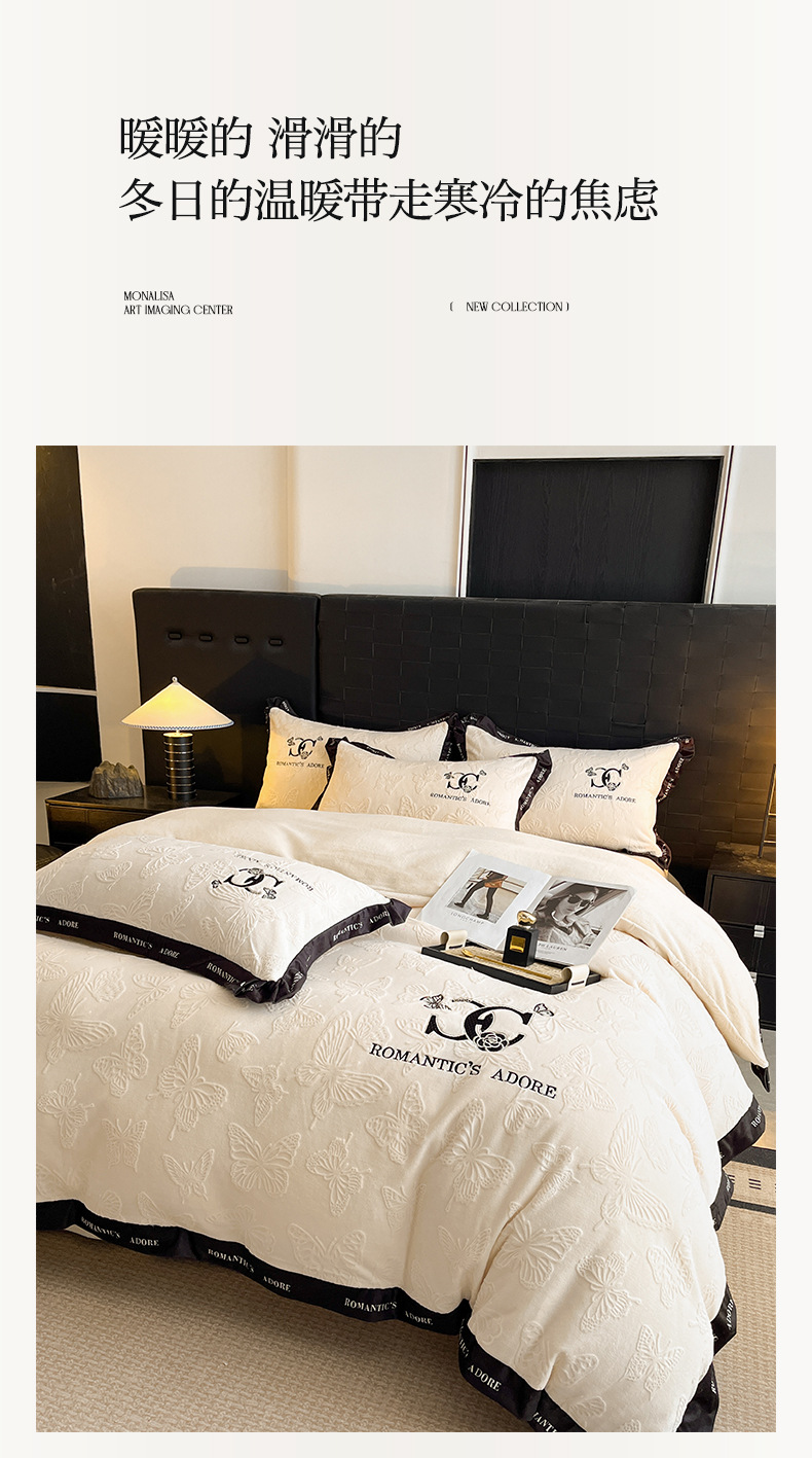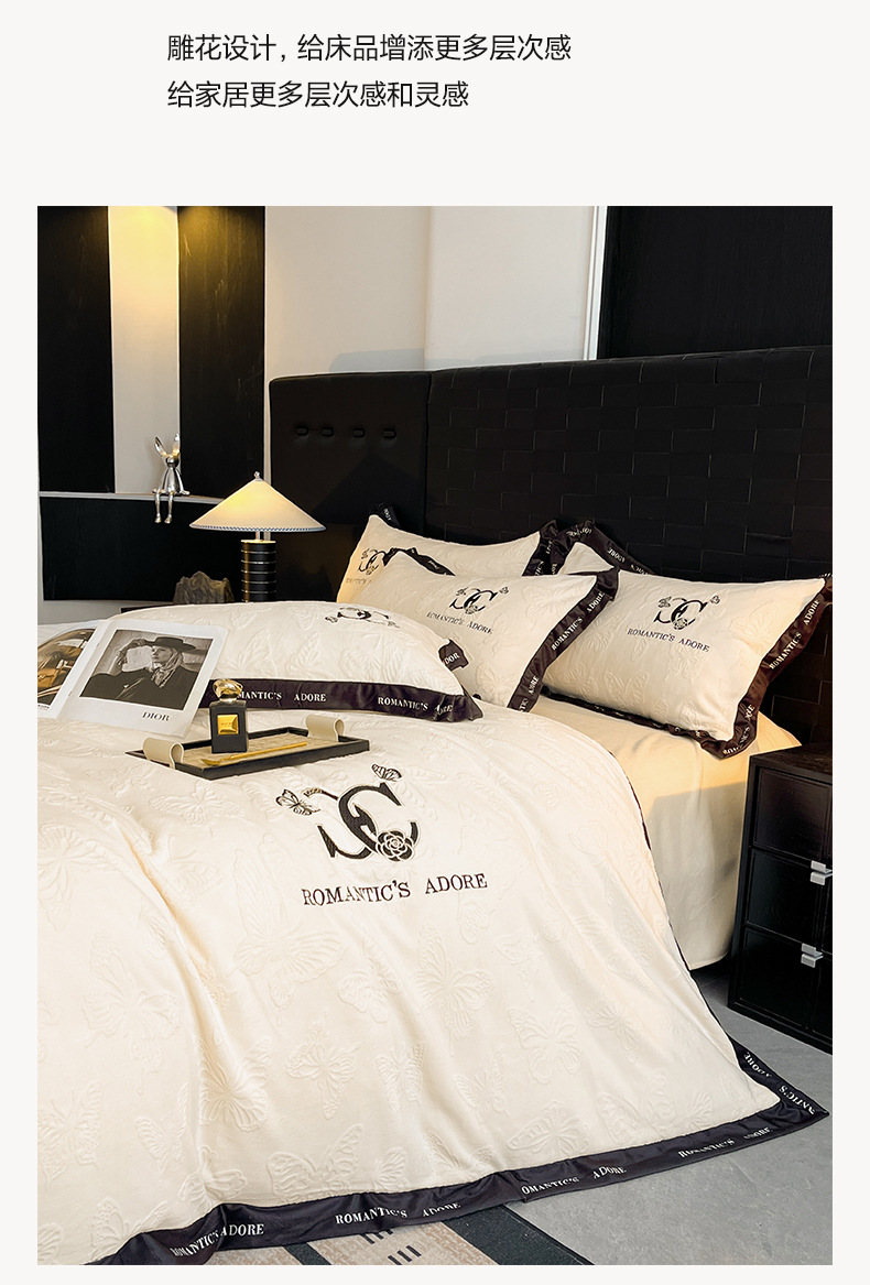 冬季亲肤裸睡级牛奶绒四件套2025新款雕花柔肤母婴可用