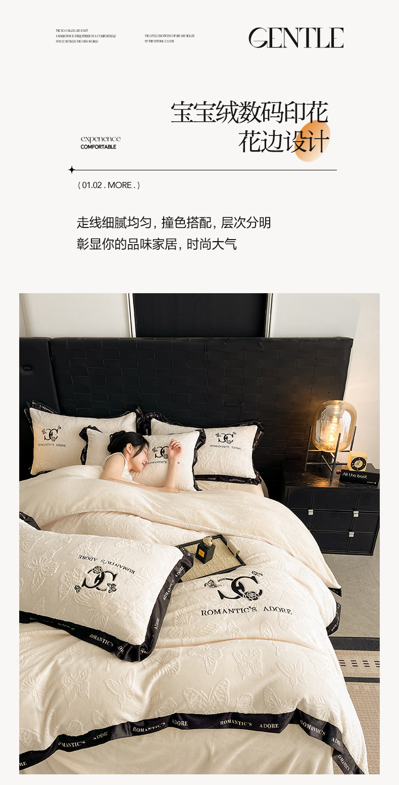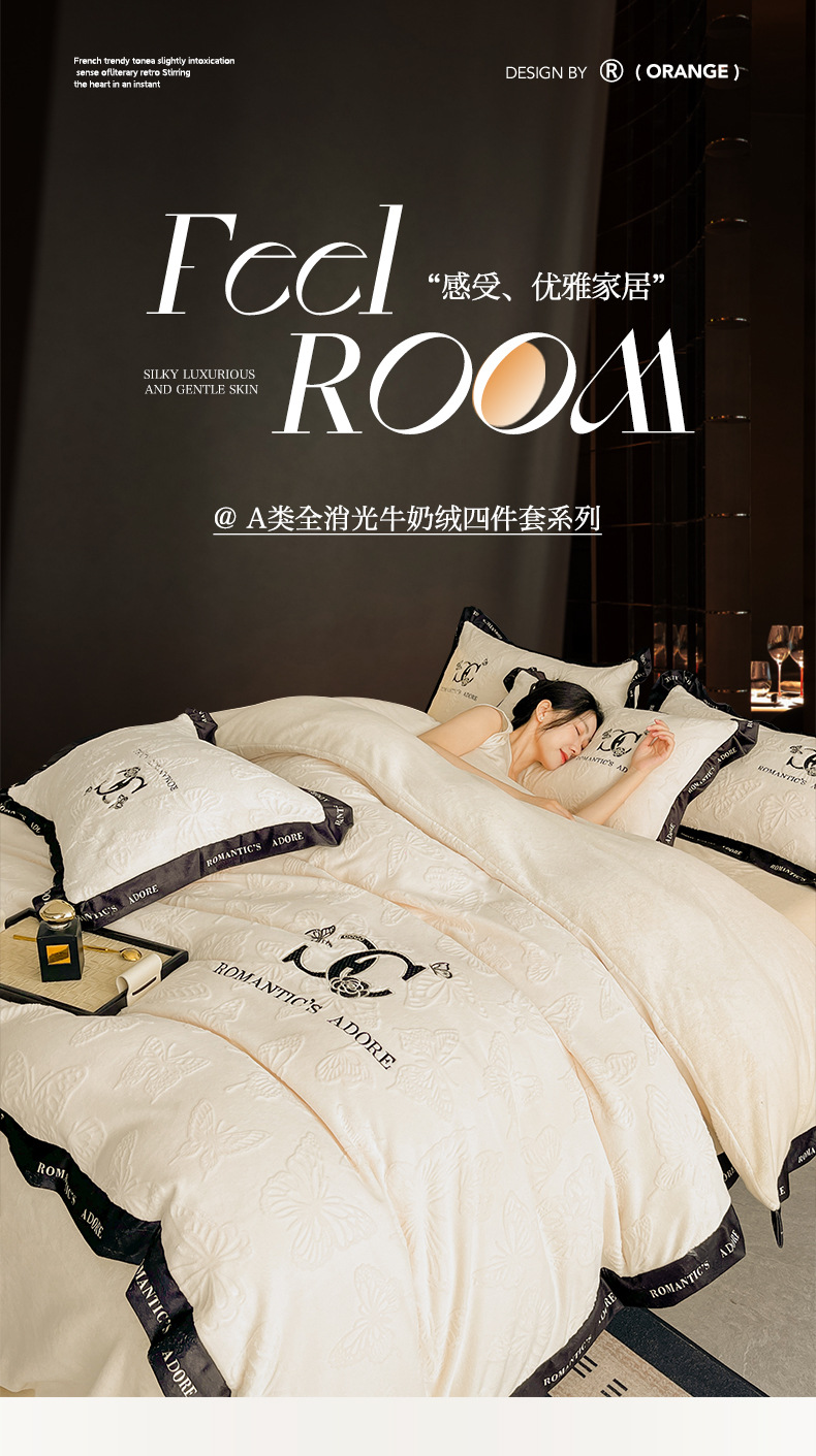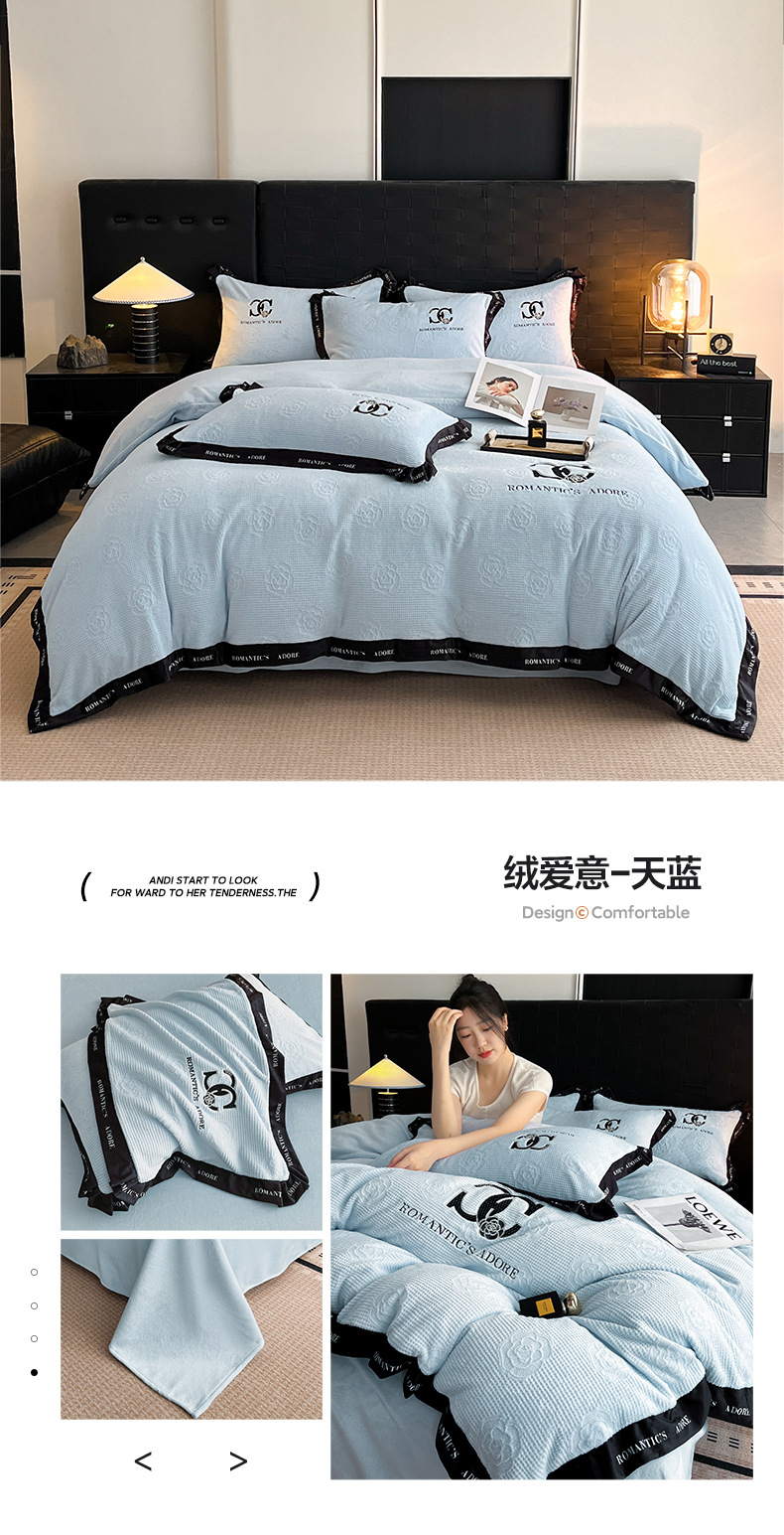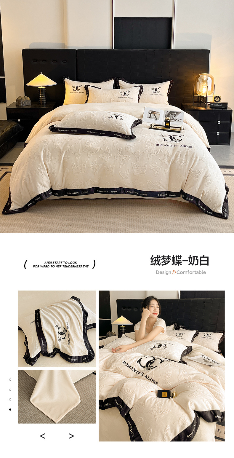 冬季亲肤裸睡级牛奶绒四件套2025新款雕花柔肤母婴可用