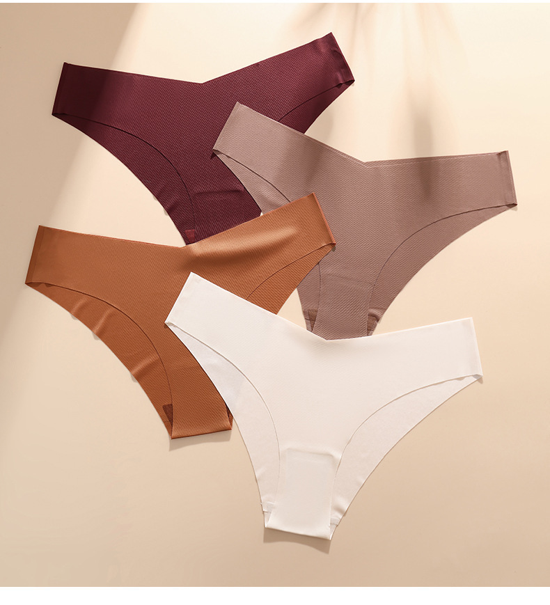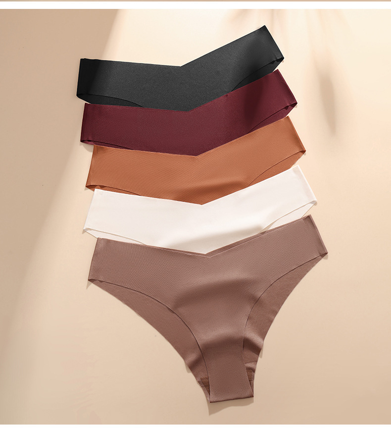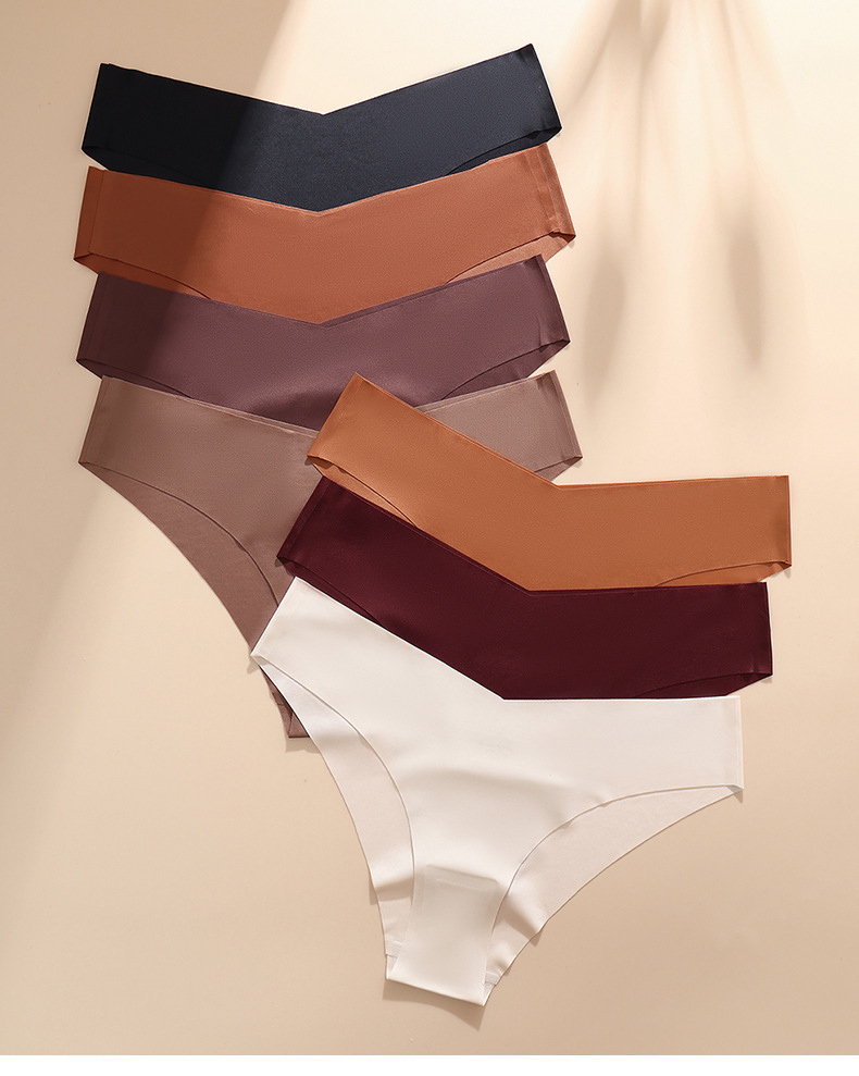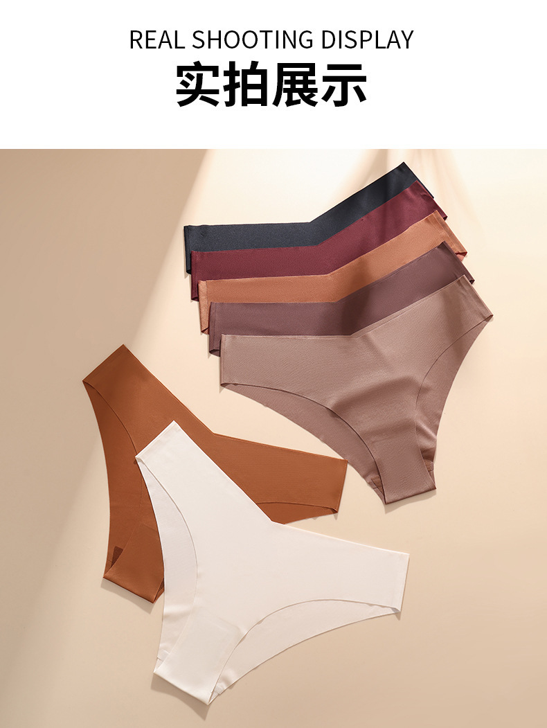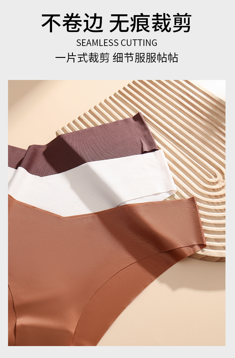 欧美大码无痕冰丝内裤女士V型腰边一片式棉裆透气女士三角内裤批