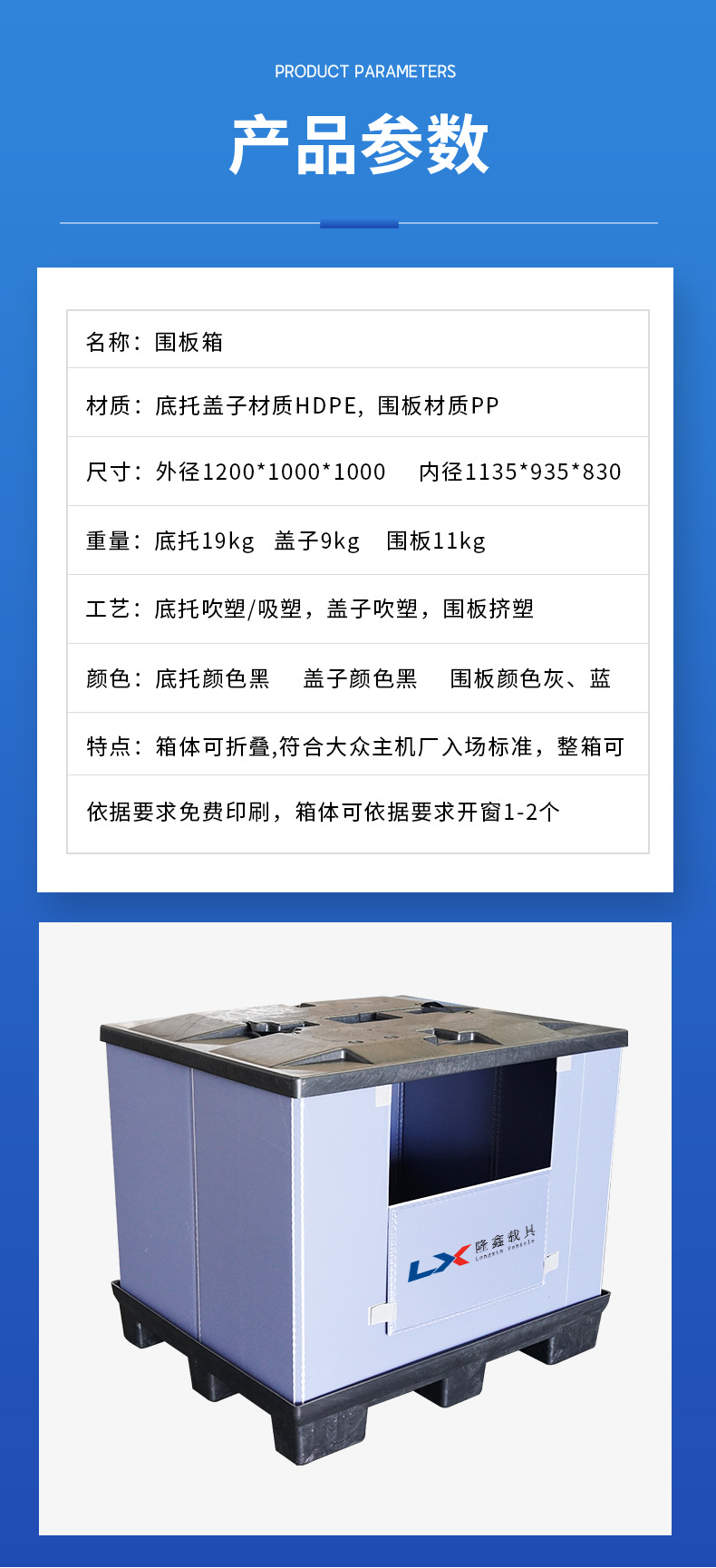 可循环塑料围板箱可折叠包装箱物流周转箱防水防潮可开窗印刷logo