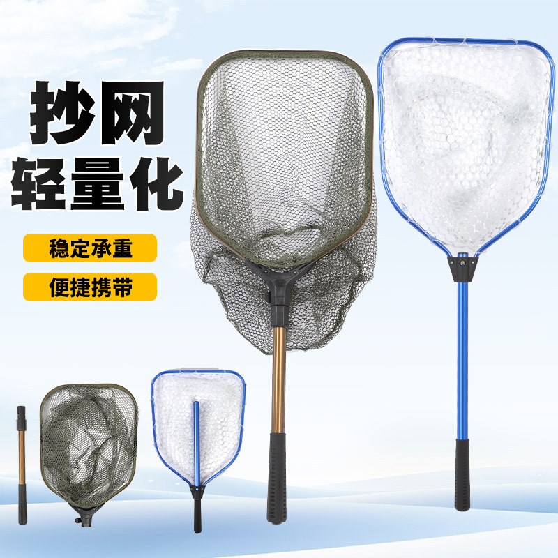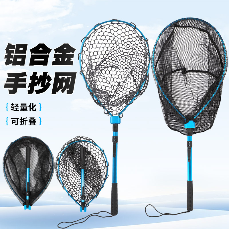 铝合金手抄网网兜抄虾小渔铝合金抄网蜂巢硅胶网兜卡扣式便携抄网