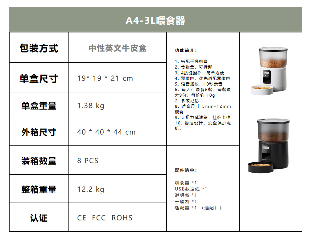 跨境专供智能宠物喂食器大容量透明存储WIFI连接猫狗通用黑白款,批发价,价格:188,厂家直销,跨境专供智能宠物喂食器大容量透明存储WIFI连接猫狗通用黑白款,免费拿样。