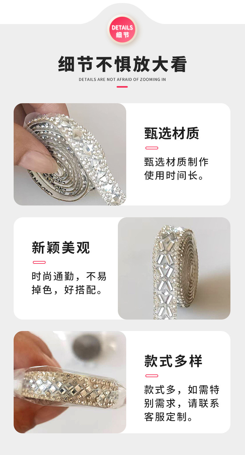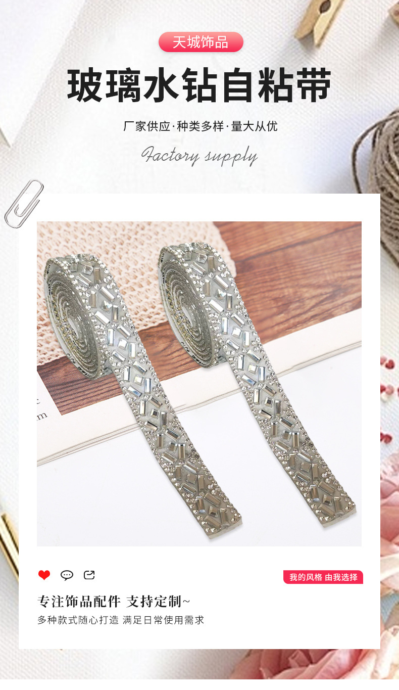 定制带玻璃水钻自粘带背胶钻水钻条配件箱包装饰烫钻厂家饰品配件,批发价,价格:2.6,厂家直销,定制带玻璃水钻自粘带背胶钻水钻条配件箱包装饰烫钻厂家饰品配件,免费拿样。