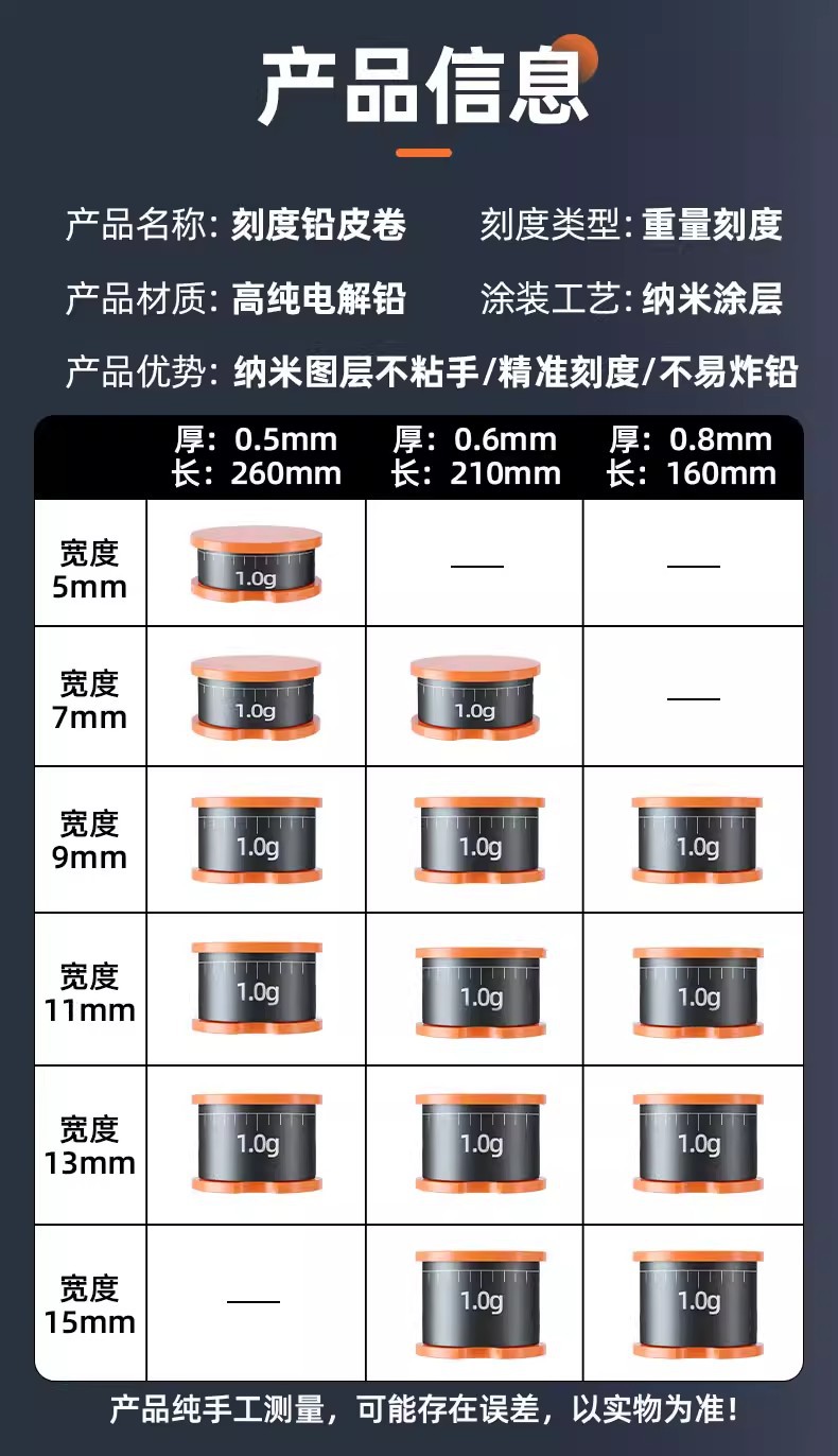 刻度铅钓鱼铅皮竞技克度铅快速铅渔具铅皮卷刻度卷铅皮垂钓用品