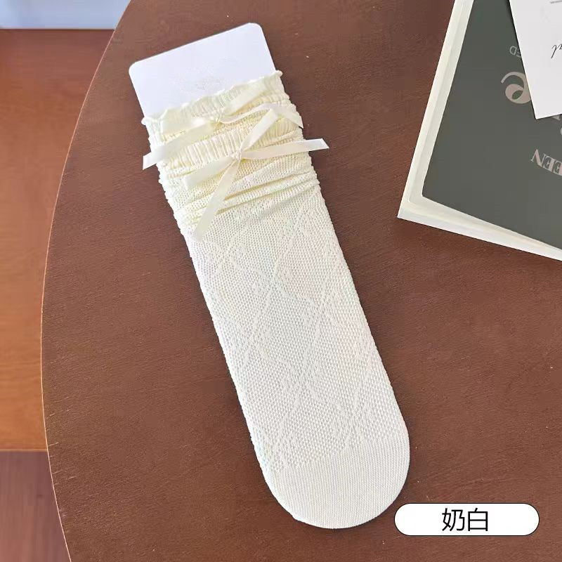 夏薄款奶白透气木耳边花边袜镂空蝴蝶结中筒袜甜美芭蕾风网眼黑色,批发价,价格:3.3,厂家直销,夏薄款奶白透气木耳边花边袜镂空蝴蝶结中筒袜甜美芭蕾风网眼黑色,免费拿样。