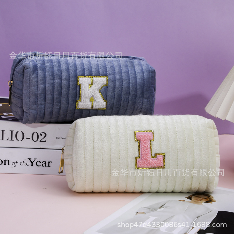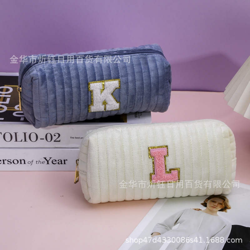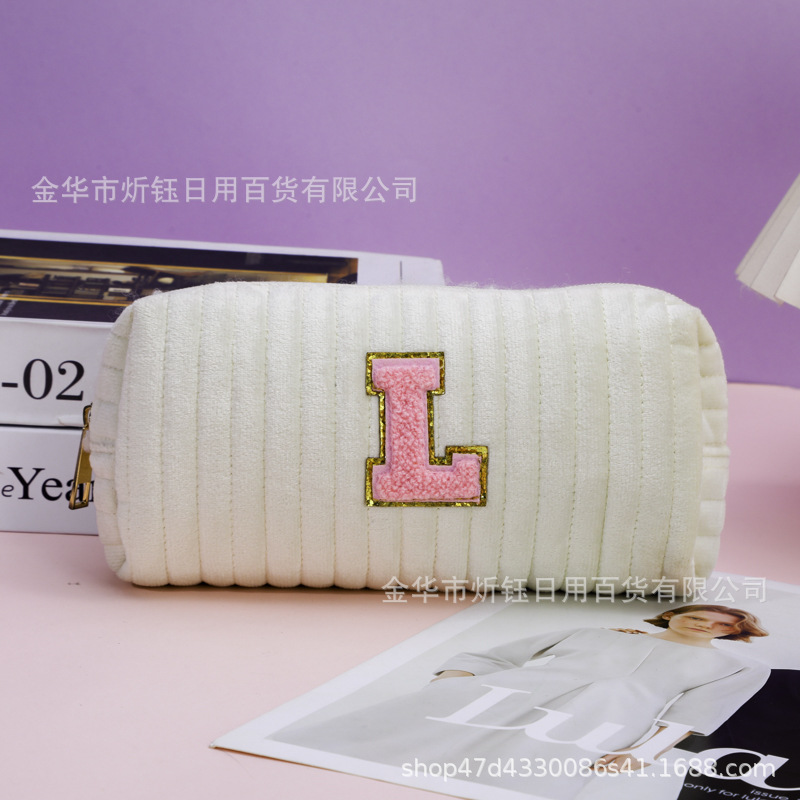 厂家直销跨境亚马逊爆款天鹅绒绗缝雪尼尔字母化妆包化妆品收纳袋
