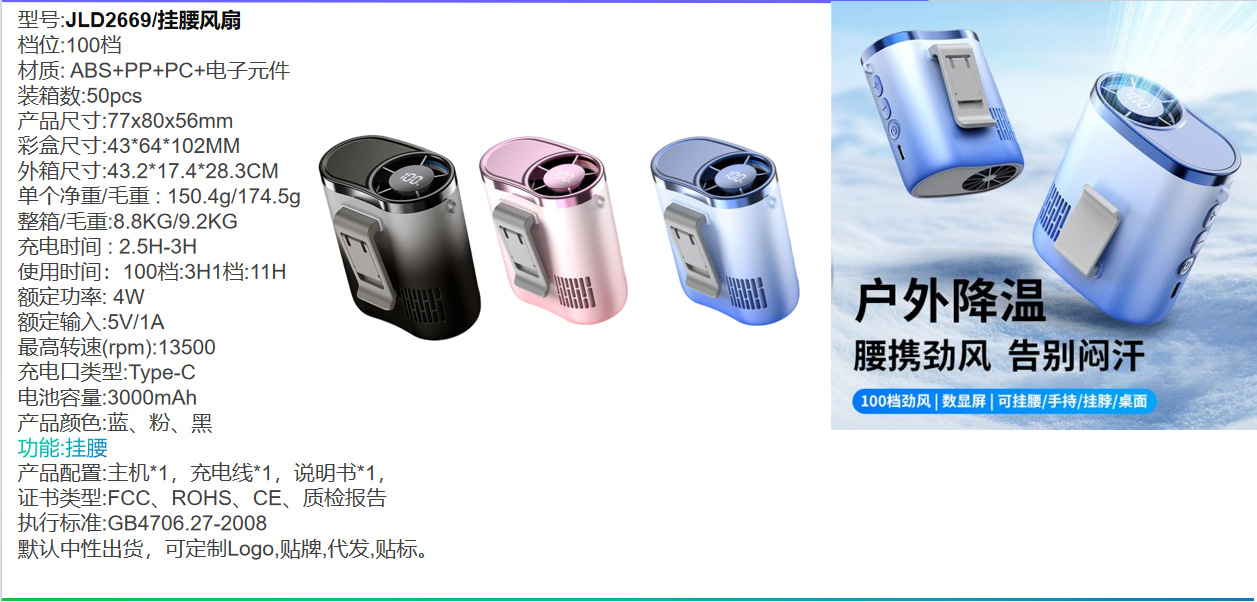 新款跨境挂腰风扇USB充电便携随身工地户外降温夹腰风扇大风力,批发价,价格:25,厂家直销,新款跨境挂腰风扇USB充电便携随身工地户外降温夹腰风扇大风力,免费拿样。