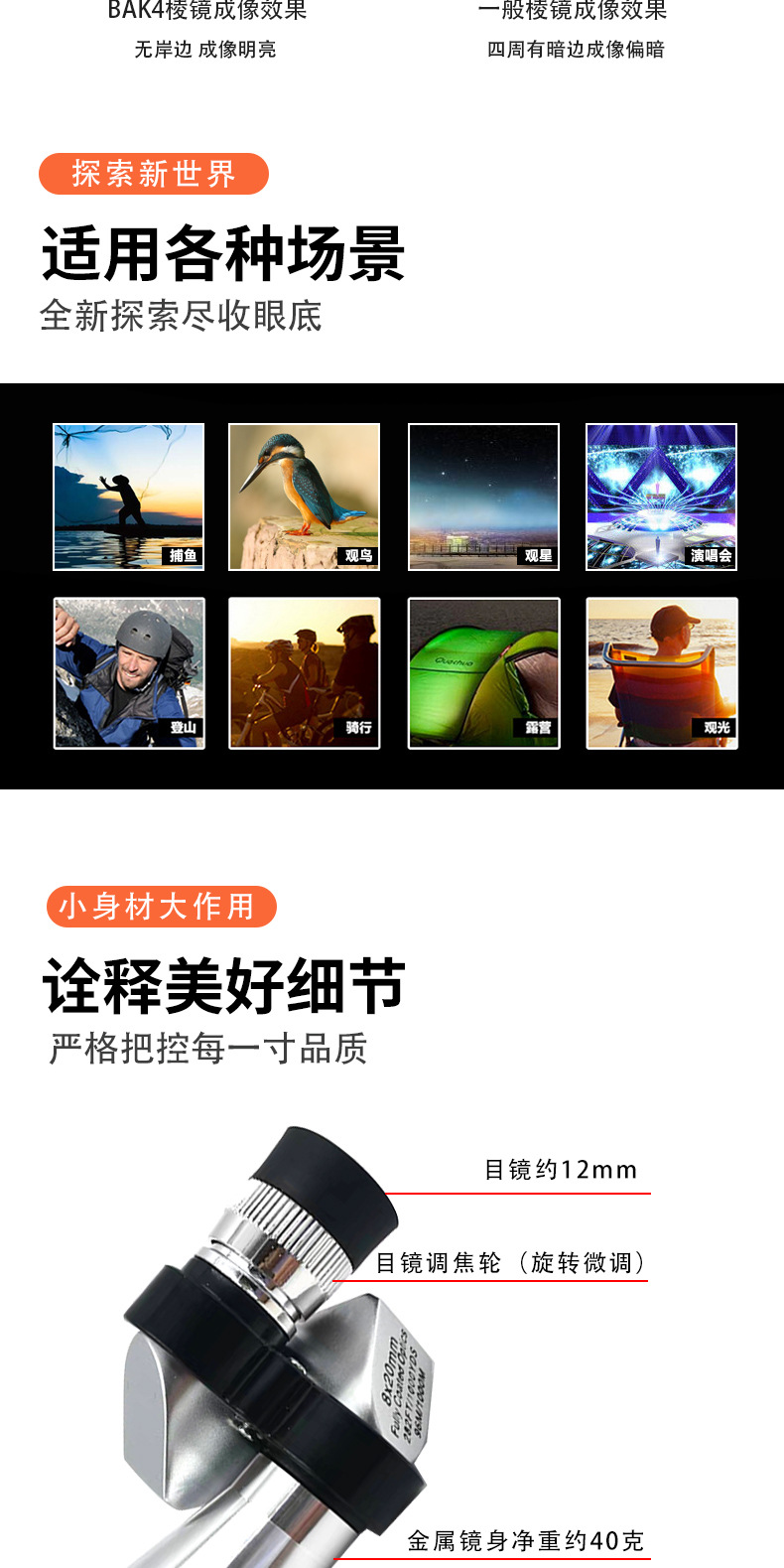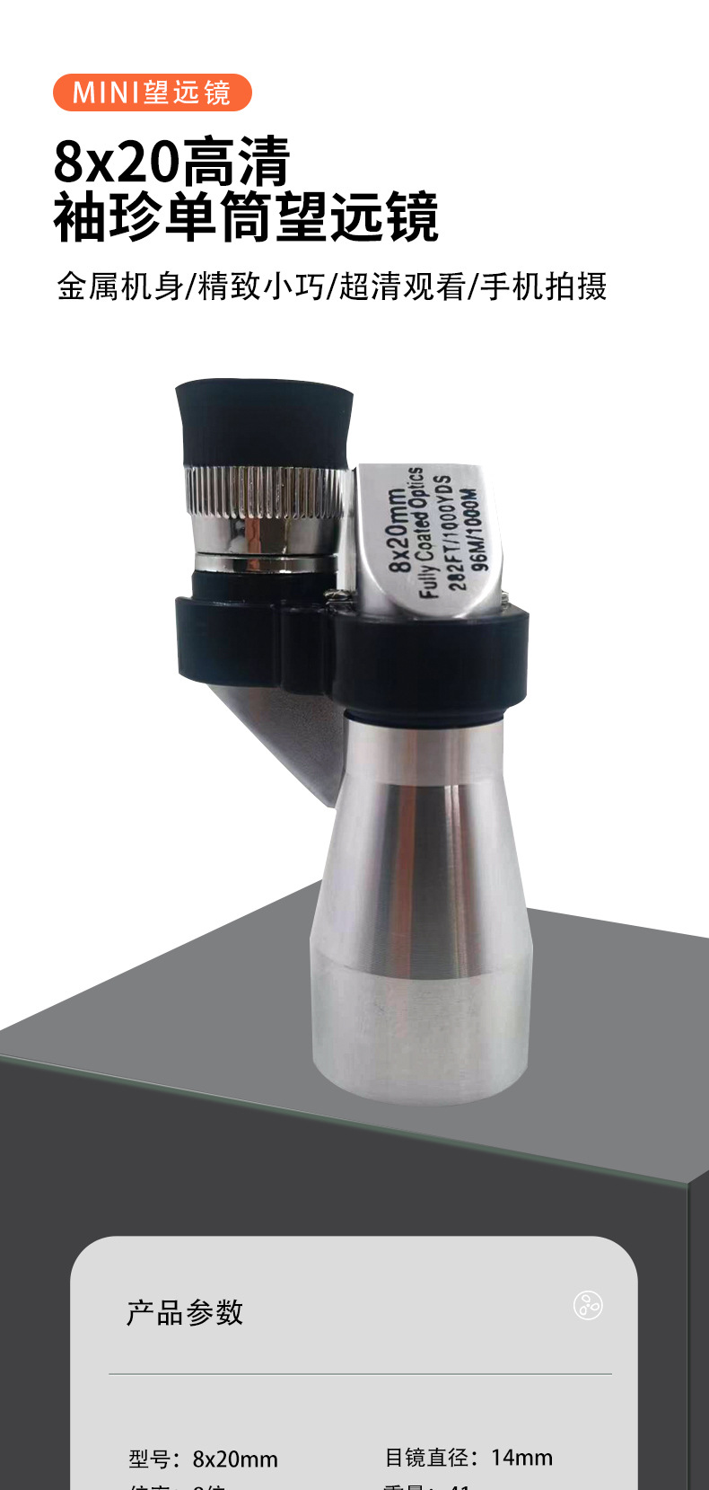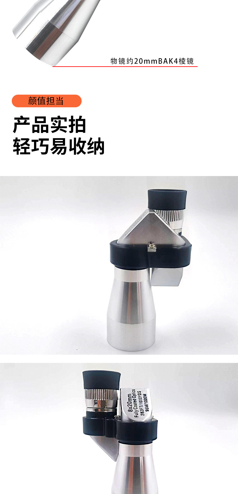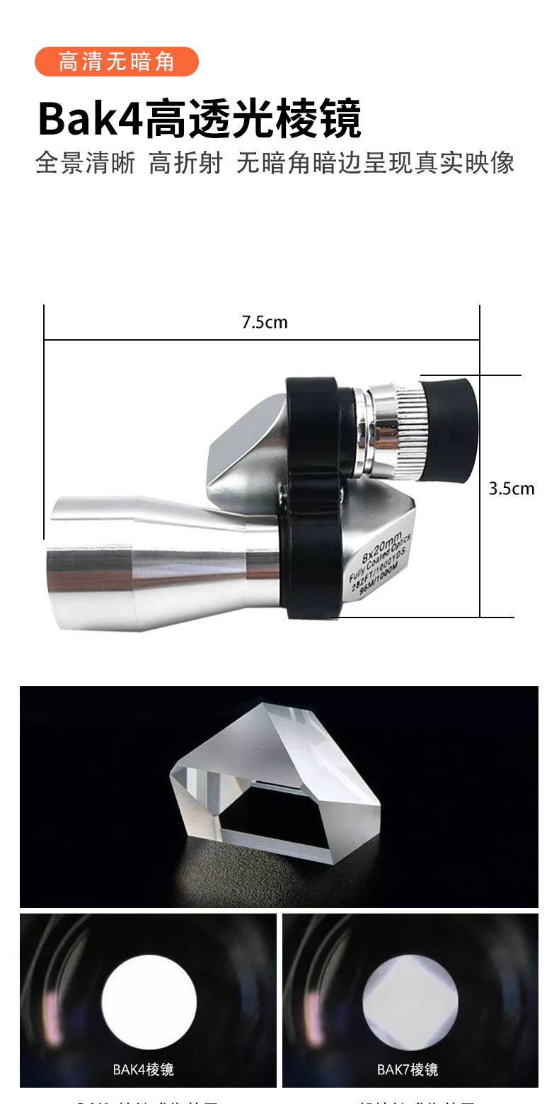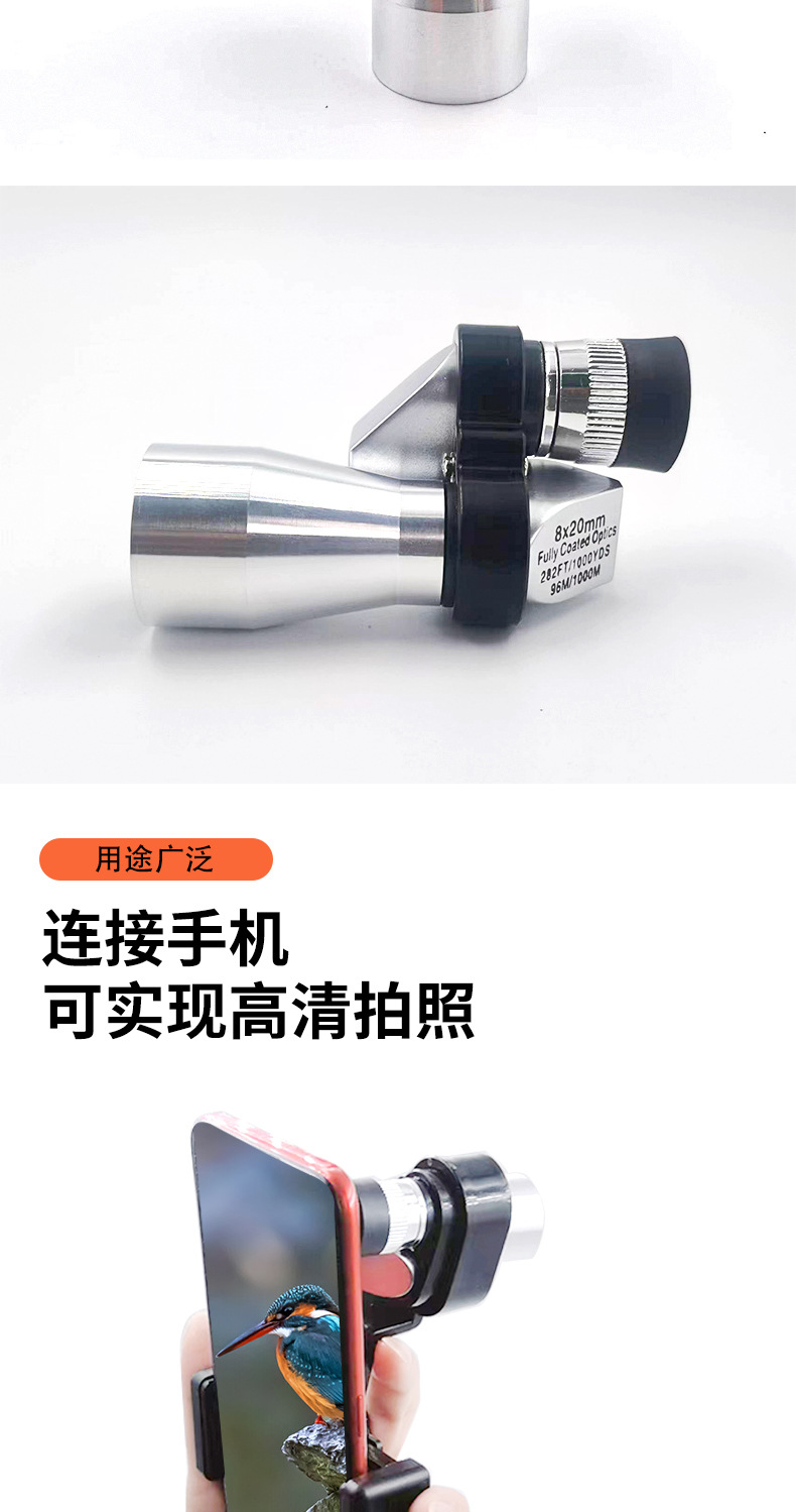 8x20拐角望远镜袖珍便携单筒防水广角户外夜视大口径耐磨金属材质