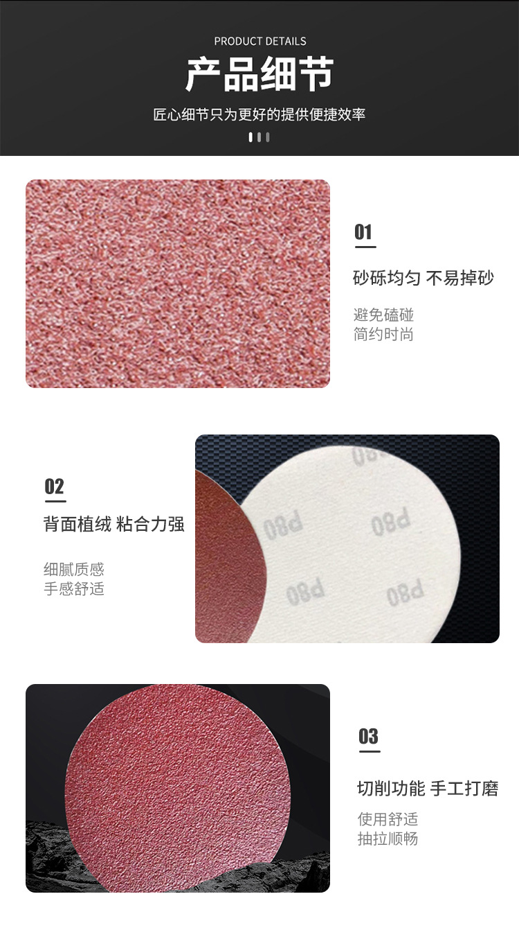 植绒砂纸红砂圆形干磨气磨砂纸打磨机背绒拉绒自粘砂皮打磨片抛光