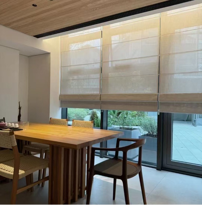 中古风亚麻罗马帘窗帘遮光卧室阳台智能纱帘手动电动遮阳平叠卷帘