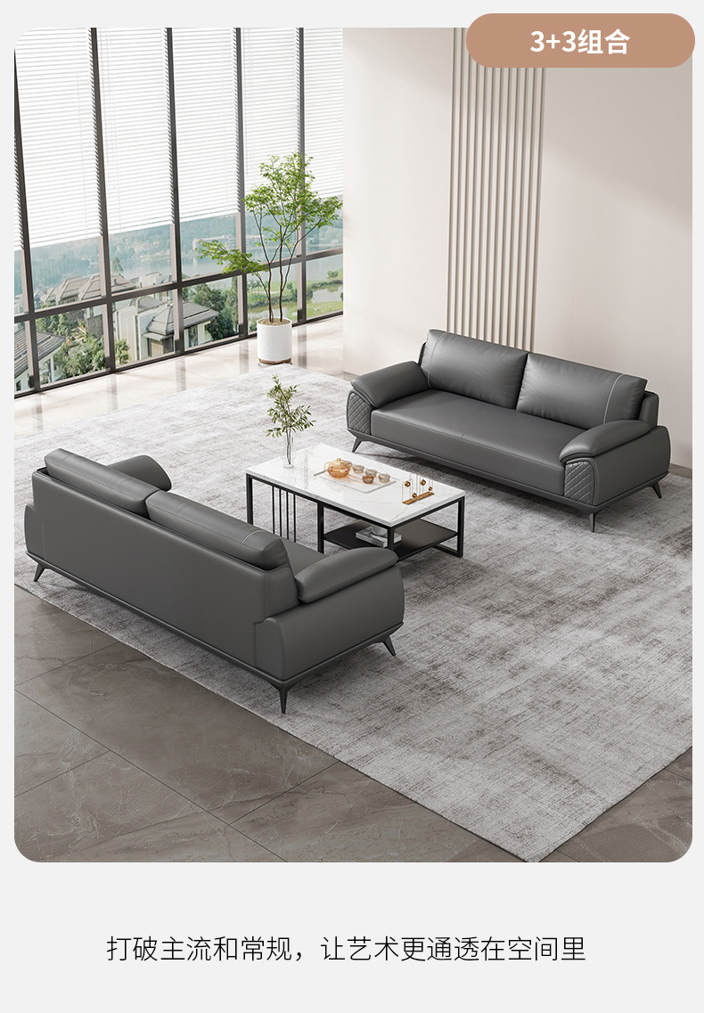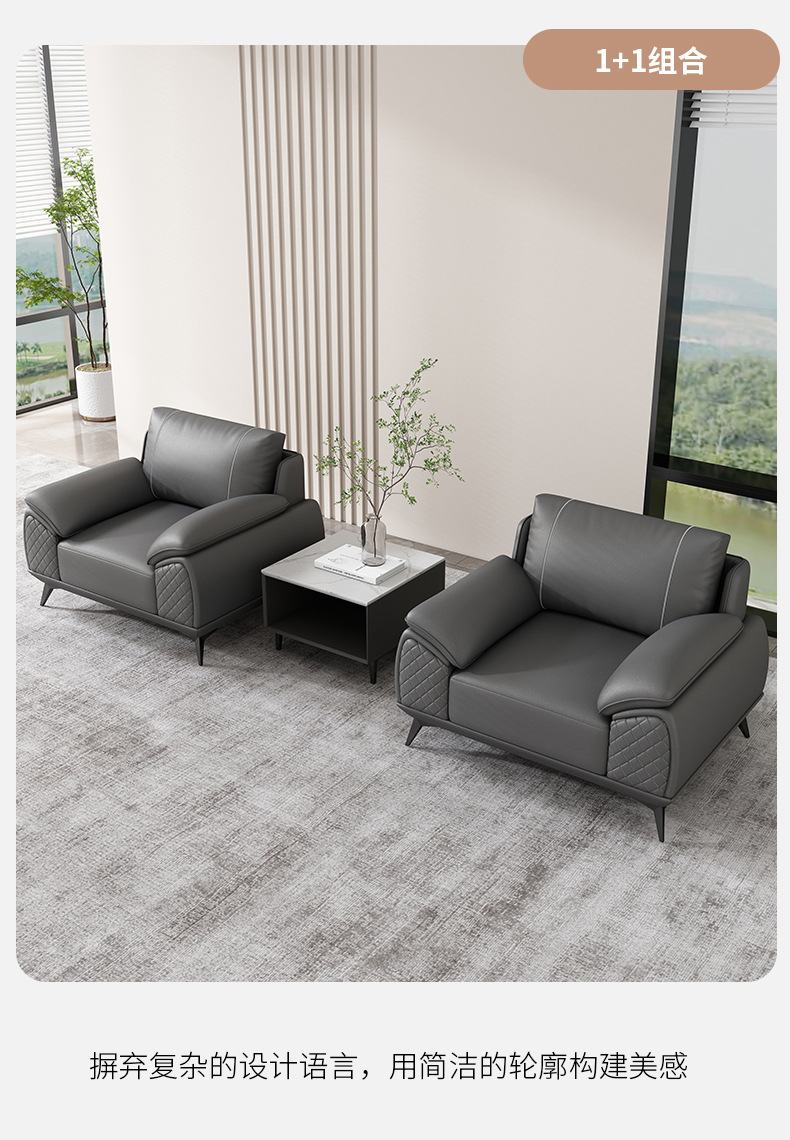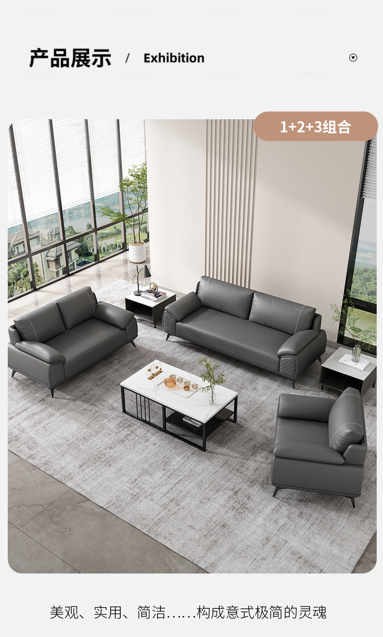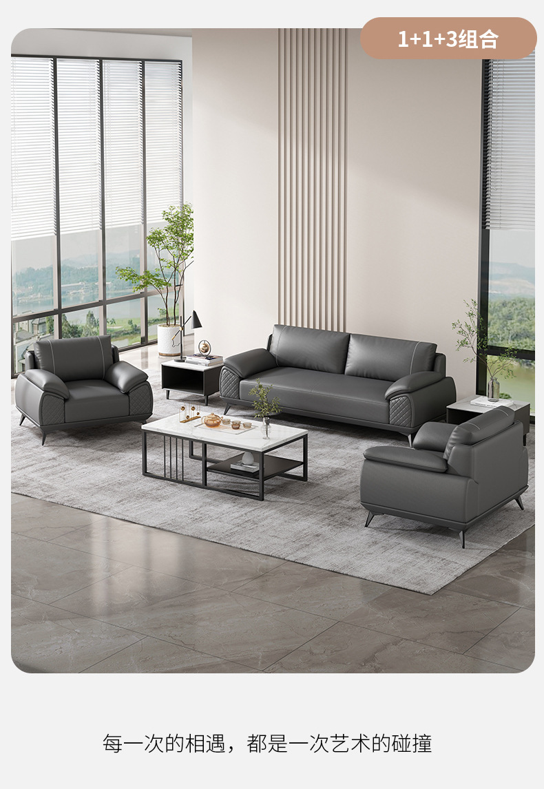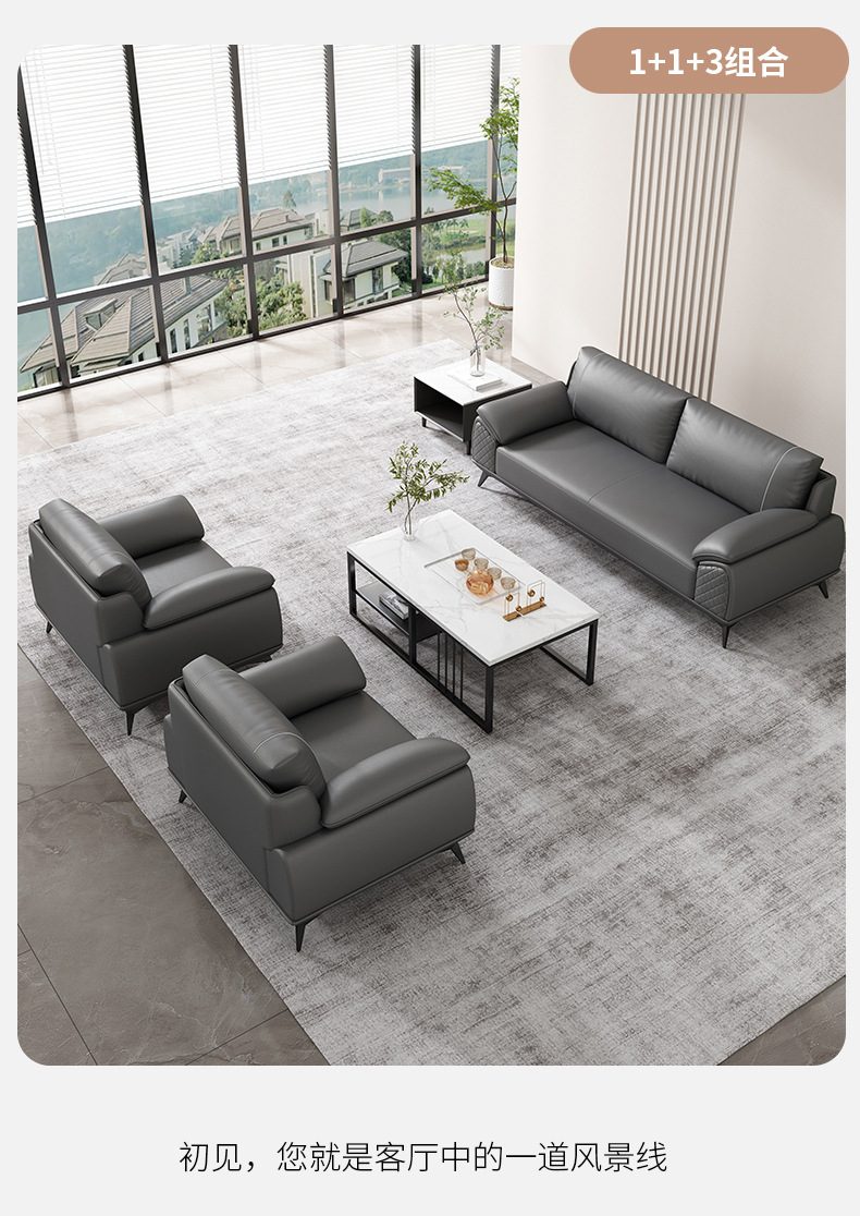 办公沙发商务经理接待室洽谈会客区办公室三人位沙发茶几组合家具