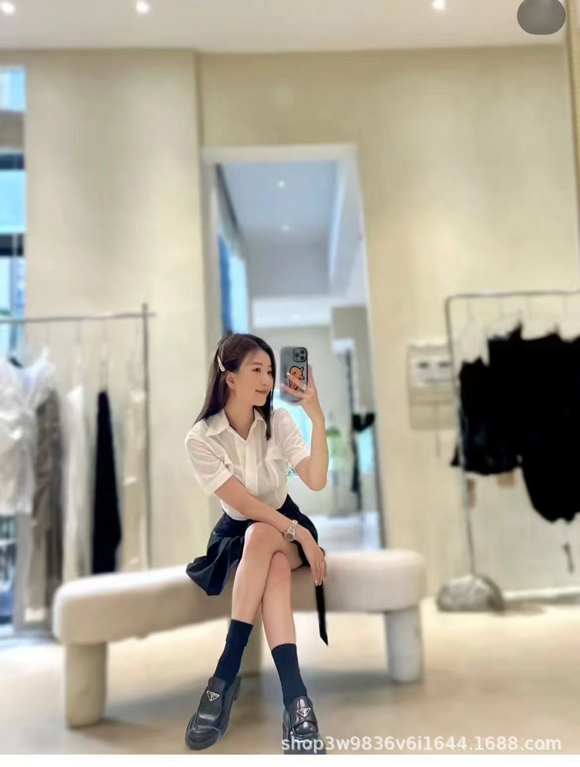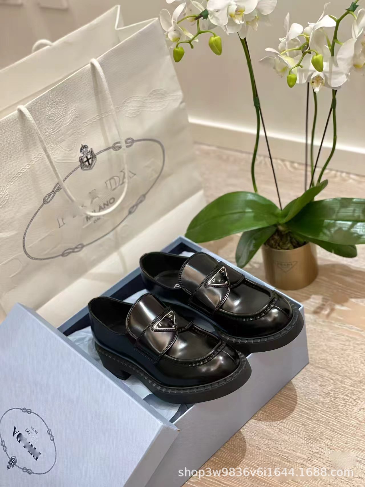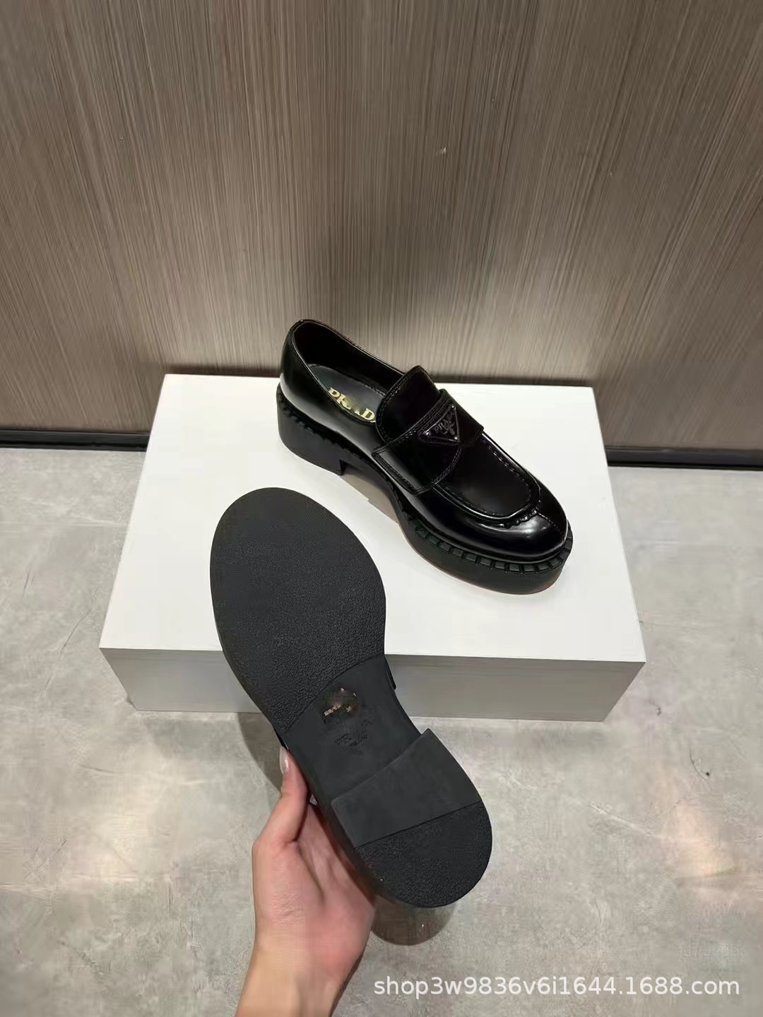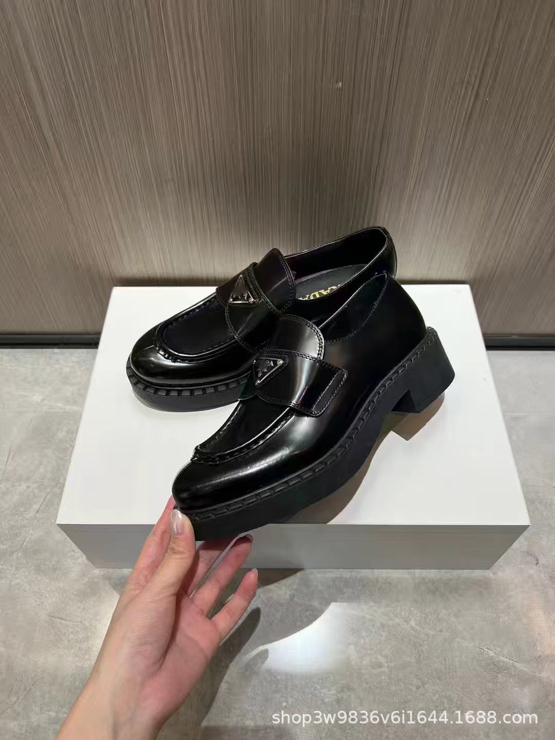 P家三角标乐福鞋女真皮厚底粗跟英伦风一脚蹬小皮鞋百搭时尚休闲