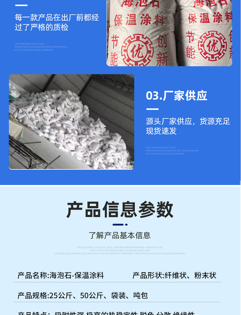 定制海泡石保温涂料工业耐高温干粉涂料窑炉化工海泡石保温材料