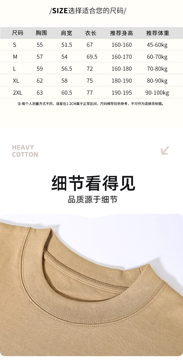 推荐理由:甄选330G 重磅双纱纯棉面料,厚实挺括不软塌,触感软糯透气,久穿透气不闷汗、亲肤不扎肤。重磅高克重质感拉满,不易变形、不易起球、不易掉色,耐洗耐穿。宽松大码美式落肩版型,不挑身材,藏肉显瘦无束缚,日