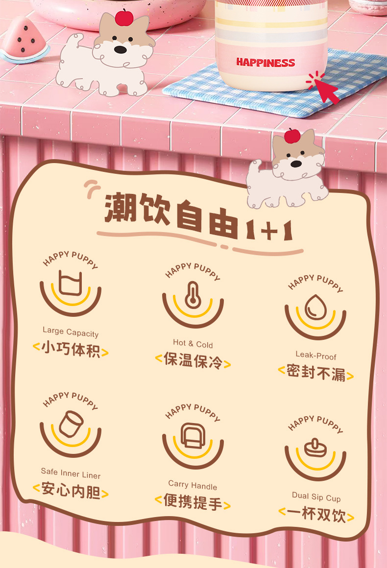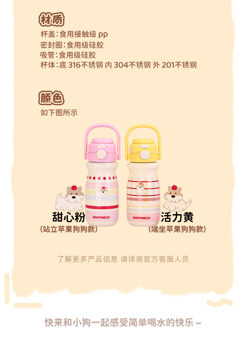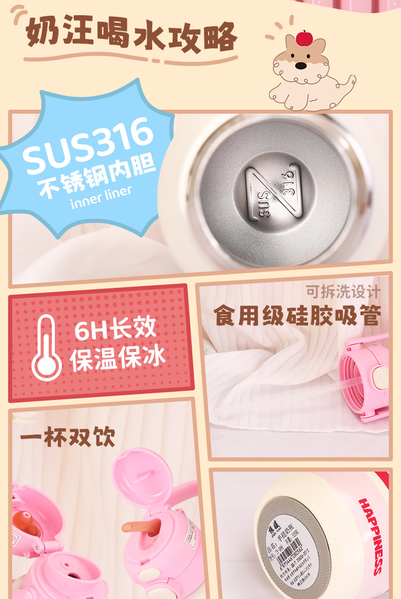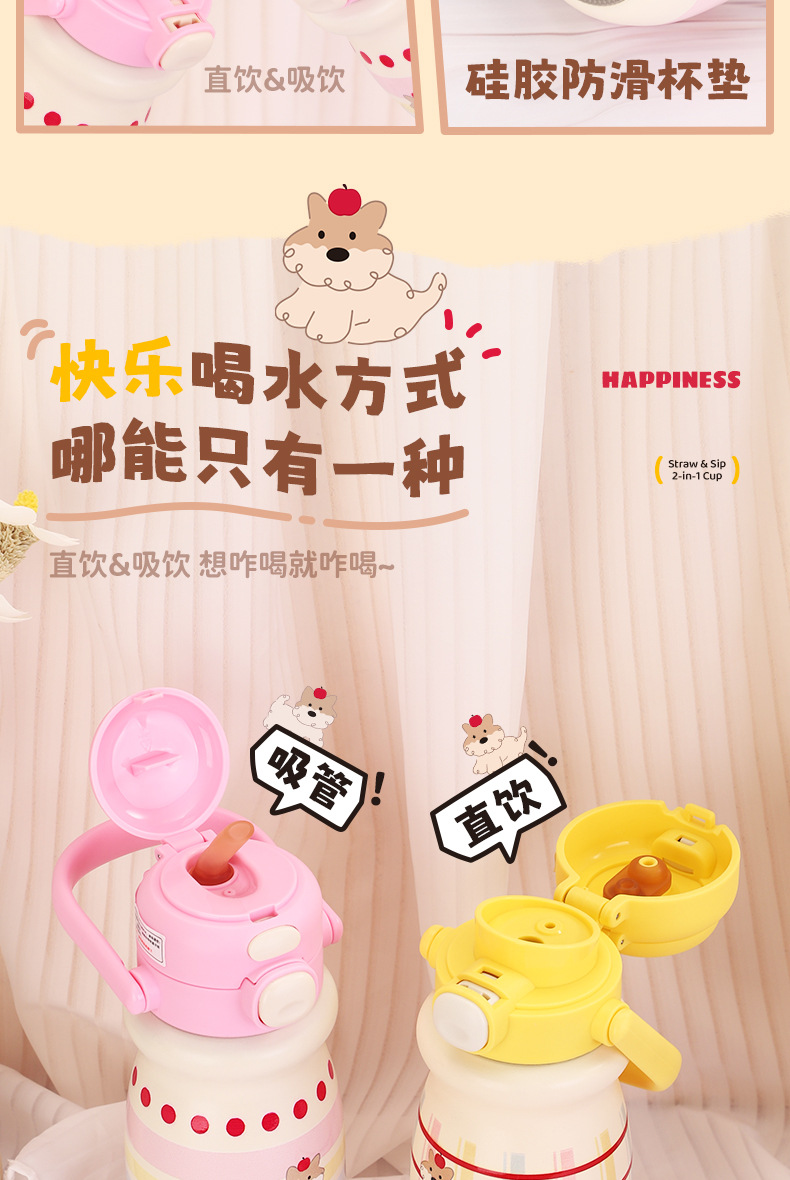 高颜值卡通儿童316不锈钢保温杯小奶狗双饮吸管杯户外便携随手杯,批发价,价格:14.5,厂家直销,高颜值卡通儿童316不锈钢保温杯小奶狗双饮吸管杯户外便携随手杯,免费拿样。