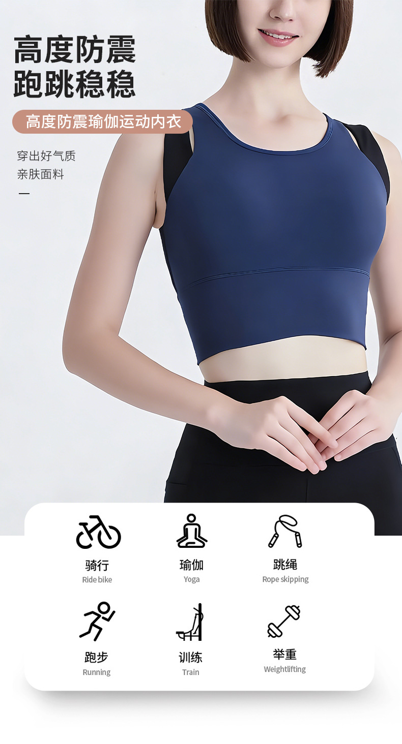 高度防震运动文胸宽肩带聚拢设计高弹透气跑步瑜伽运动内衣文胸批