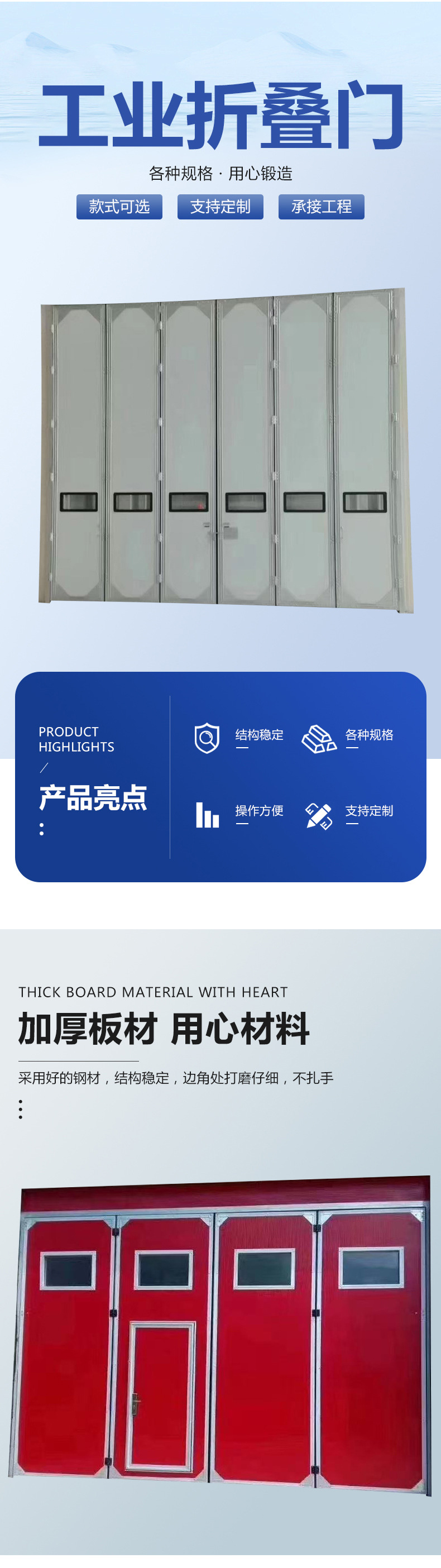 保温工业折叠门机库门厂房仓库彩钢电动工业保温工业折叠门定制