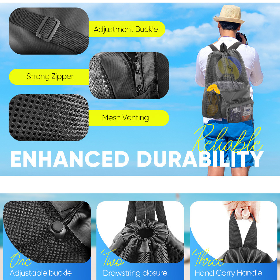 大容量多功能网眼双肩专用游泳包可折叠旅行游泳收纳抽绳束口袋