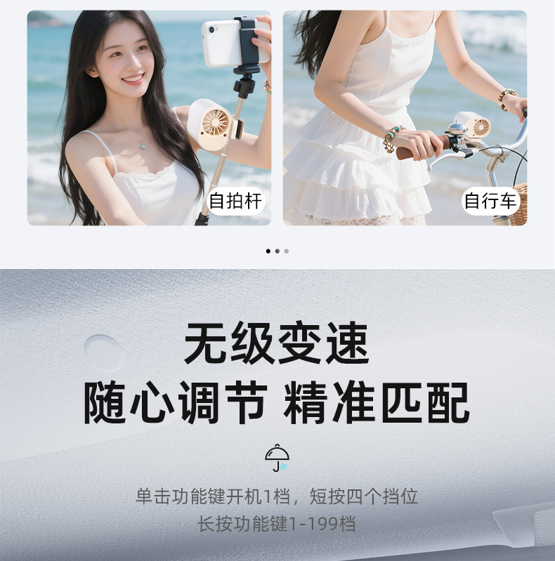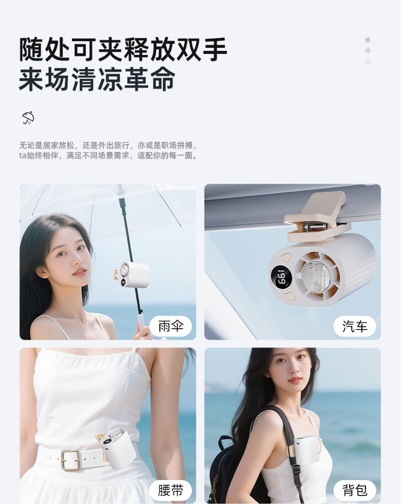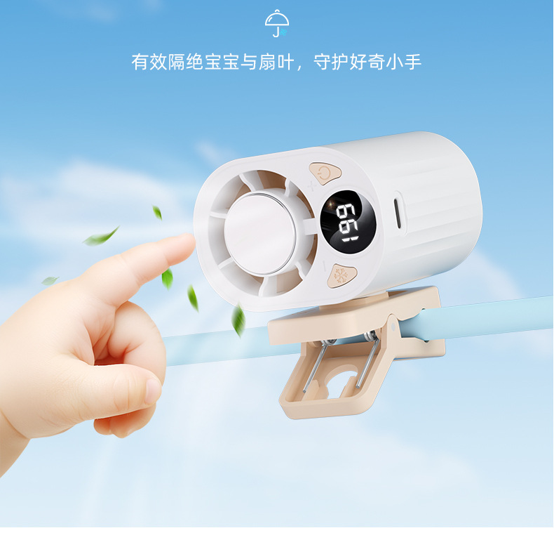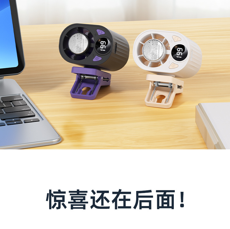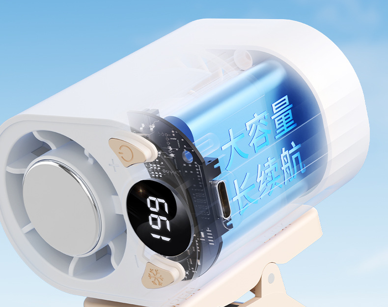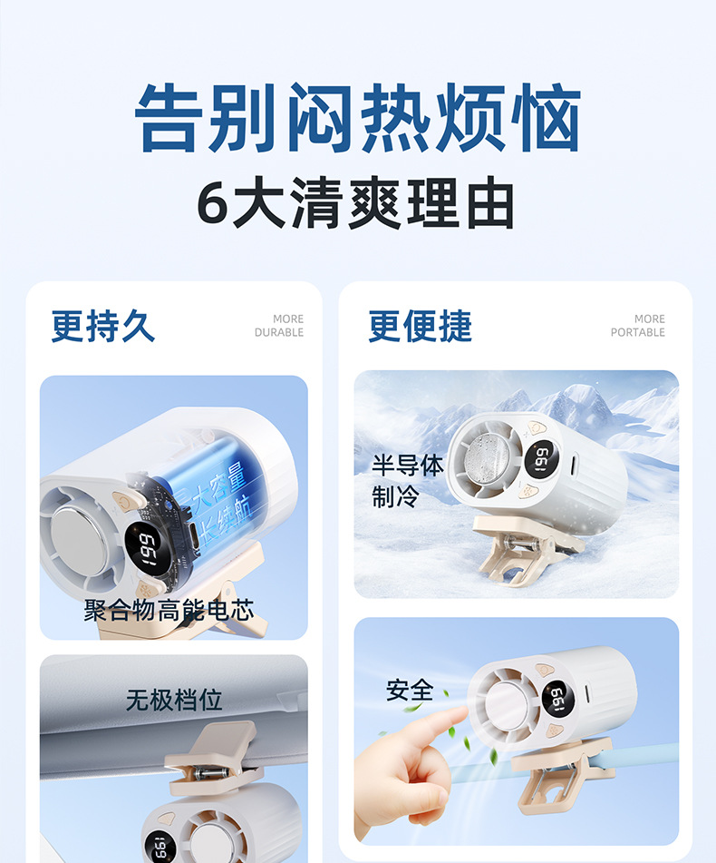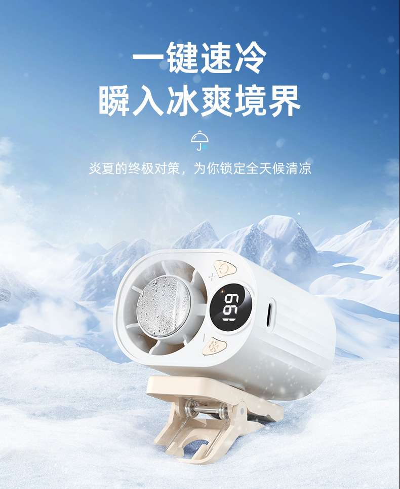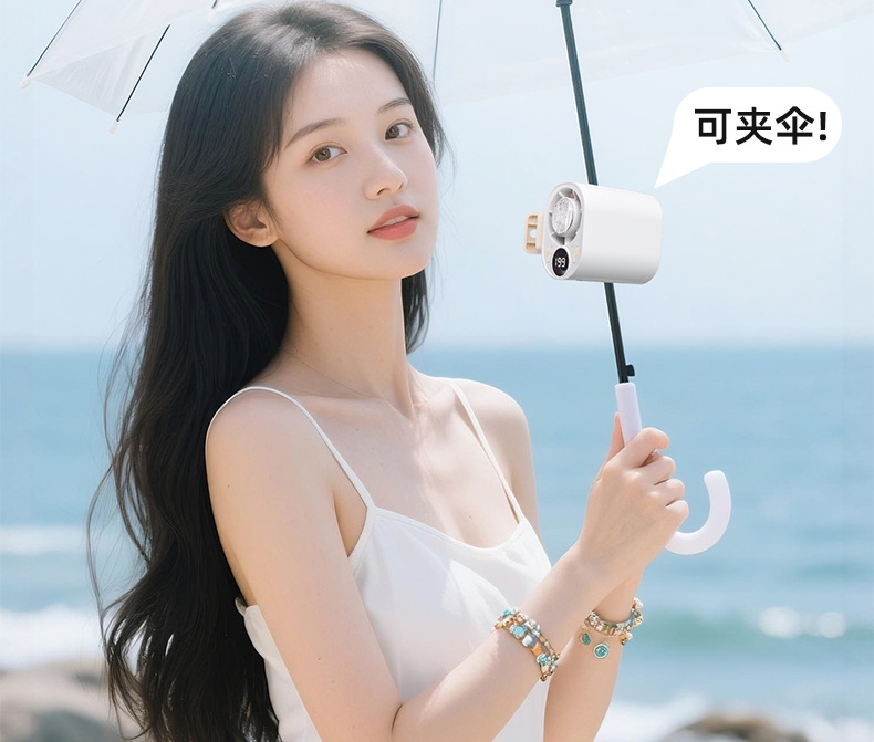 跨境高速数显小风扇桌面雨伞夹子风扇户外挂腰半导体制冷充电风扇