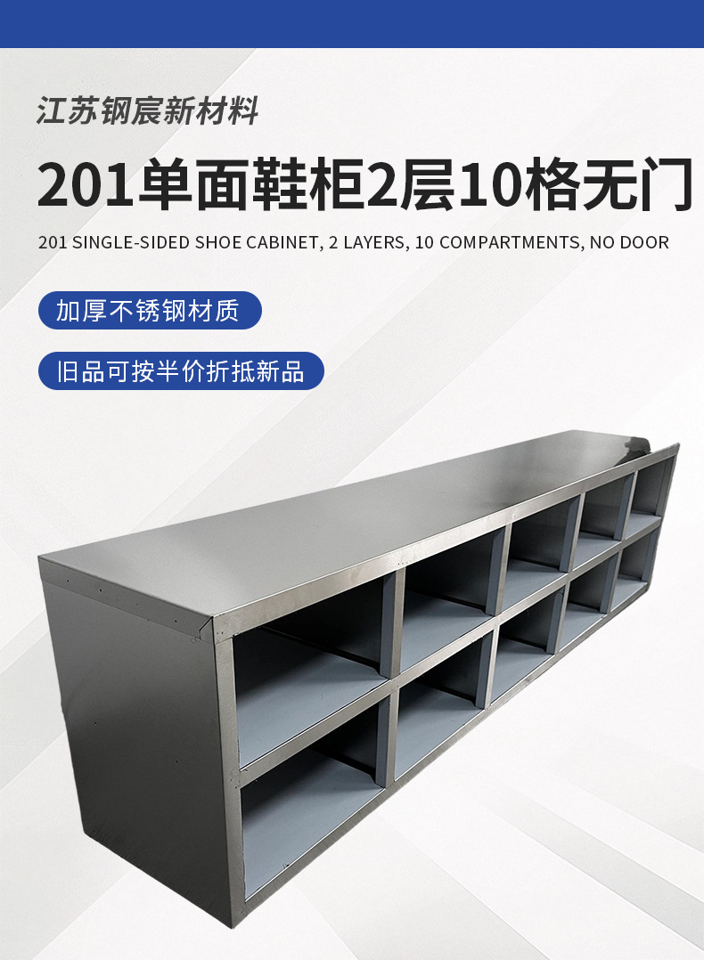 201单面鞋柜2层10格无门更鞋柜无尘净化车间实验室不锈钢收纳柜