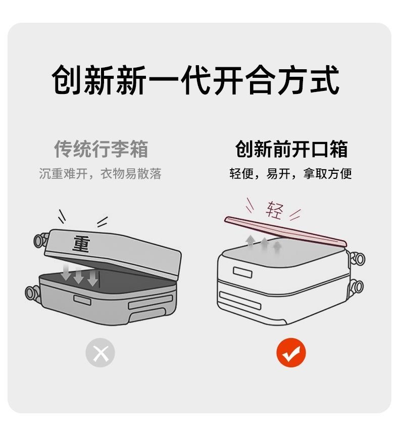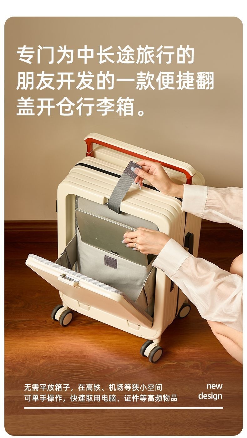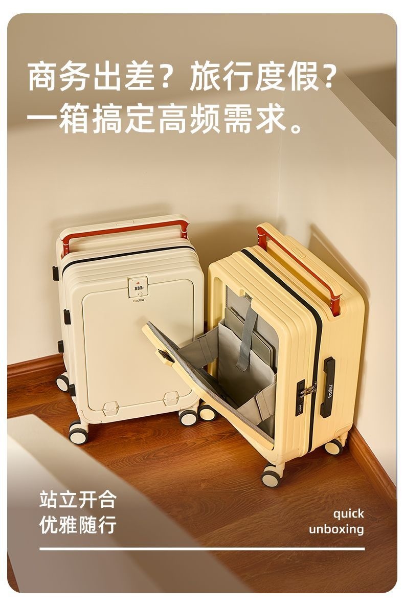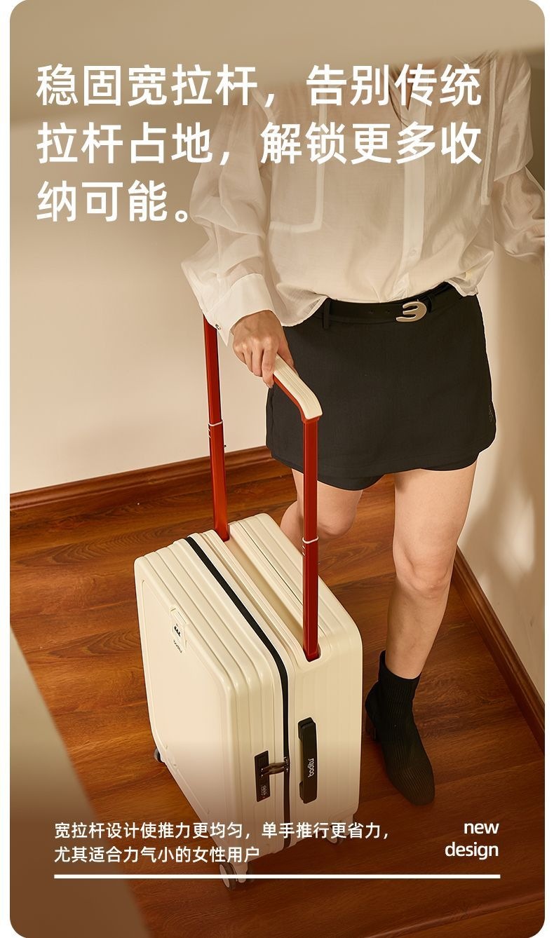中置宽拉杆行李箱前开口24寸男女学生密码箱高颜值24纯PC旅行箱