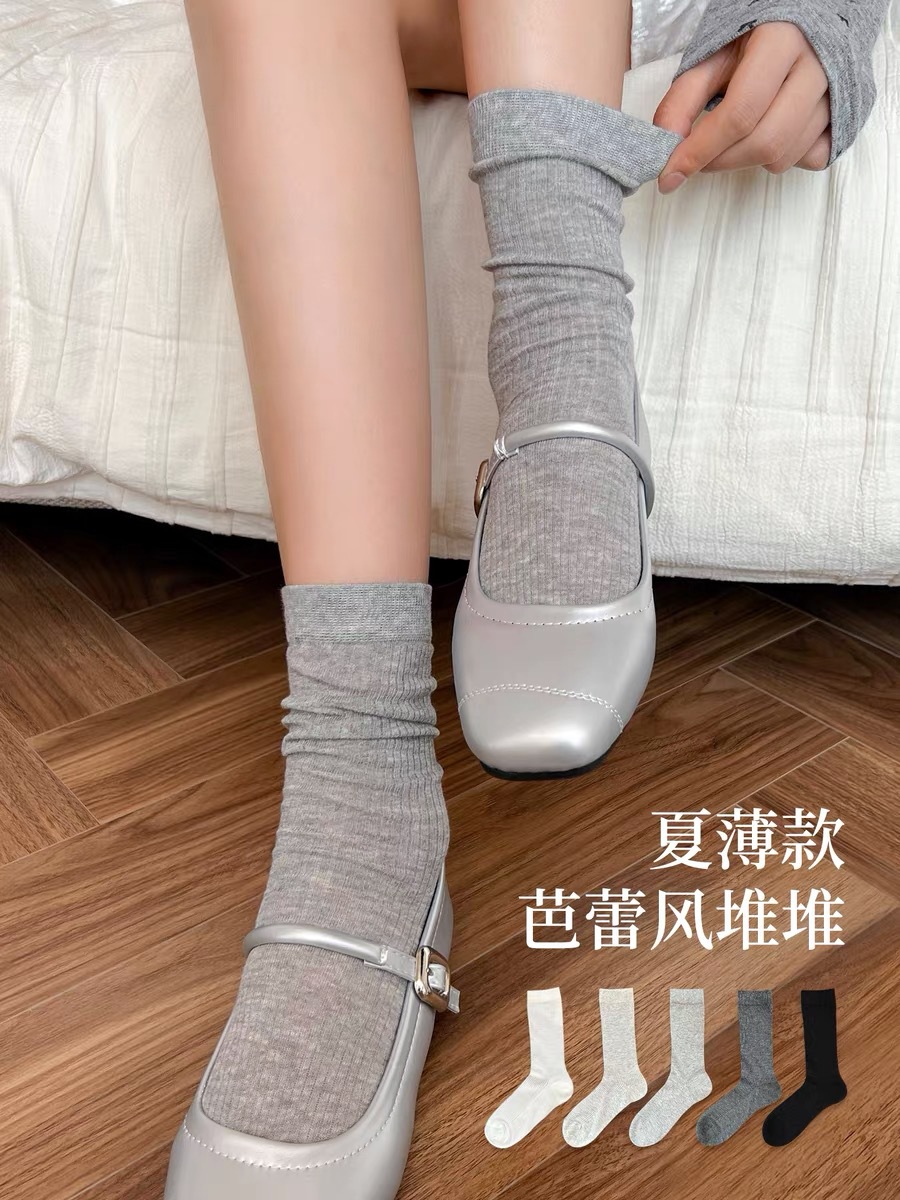 2026春夏新品无骨薄款堆堆袜透气辽源袜厂批发代发芭蕾风堆堆袜