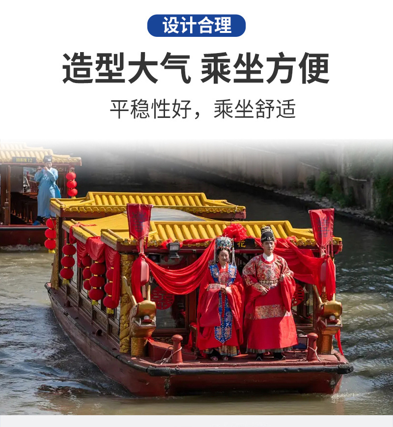 大型仿古影视剧迎亲船 画舫船 水上婚礼接待船 婚庆主题观光船