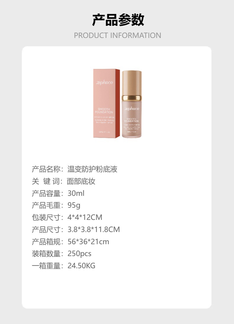 zephoco 温变防护粉底液 水润轻薄质地日常便携服帖打造自然妆效,批发价,价格:15,厂家直销,zephoco 温变防护粉底液 水润轻薄质地日常便携服帖打造自然妆效,免费拿样。