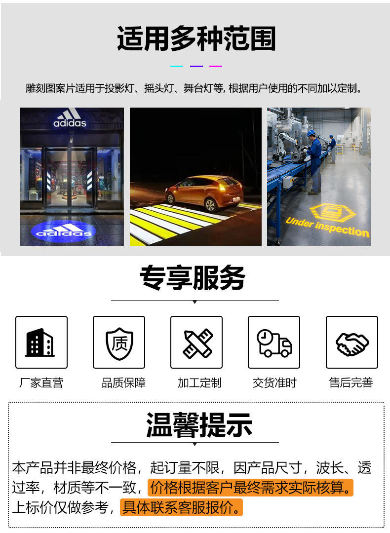 广告投影灯门头logo射灯镜片gobo片设计文字图案logo片灯片玻璃片
