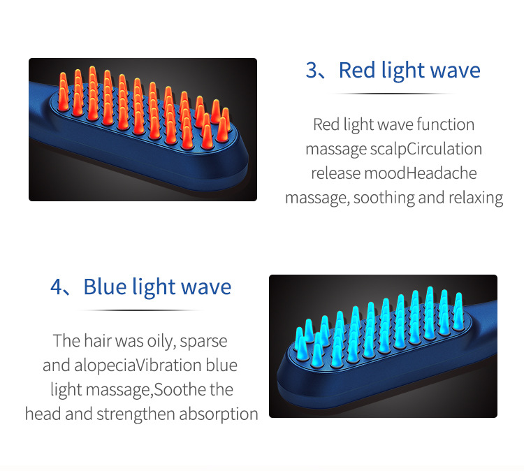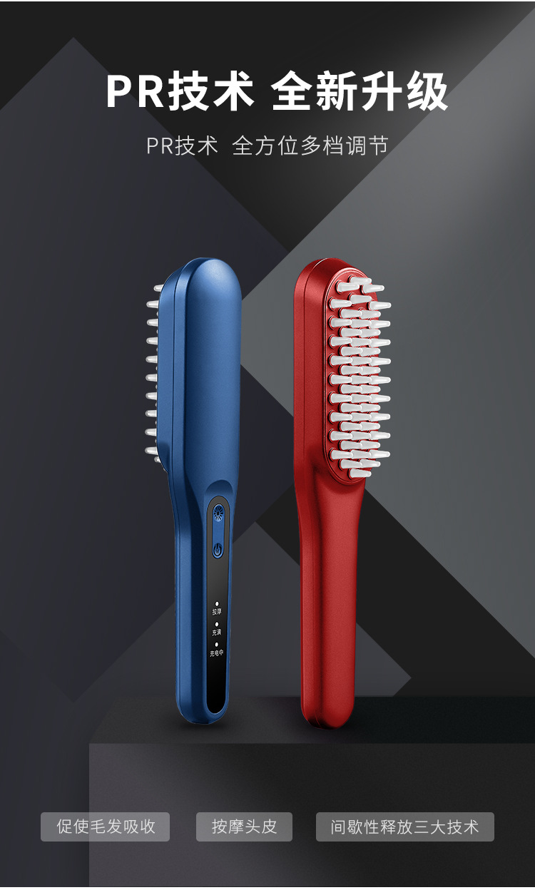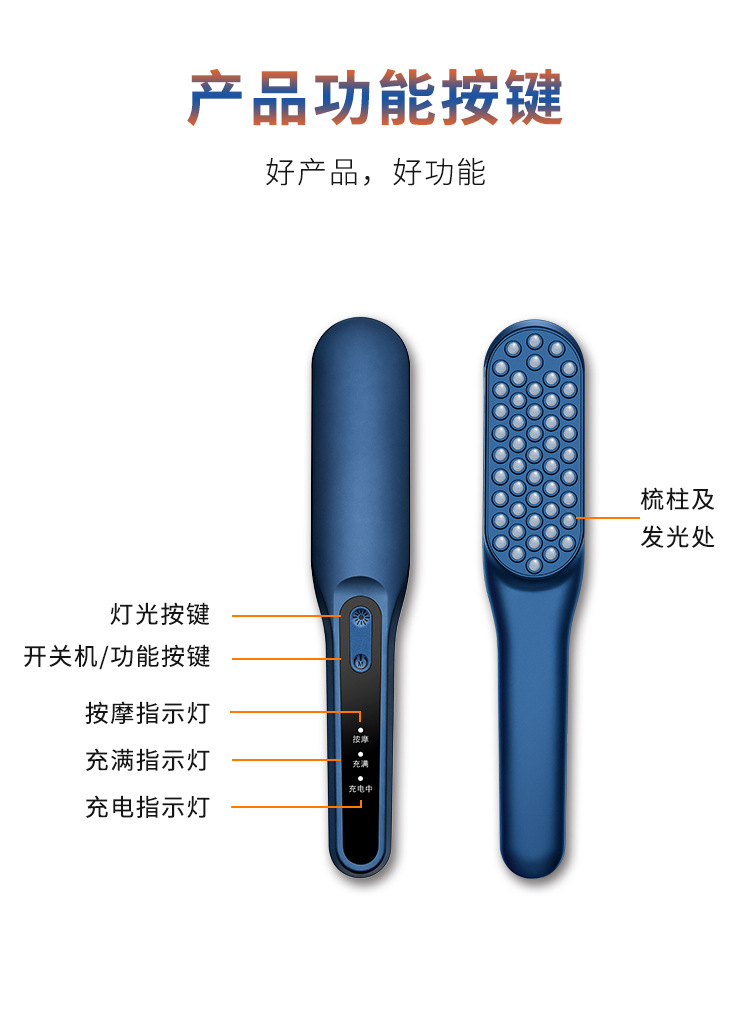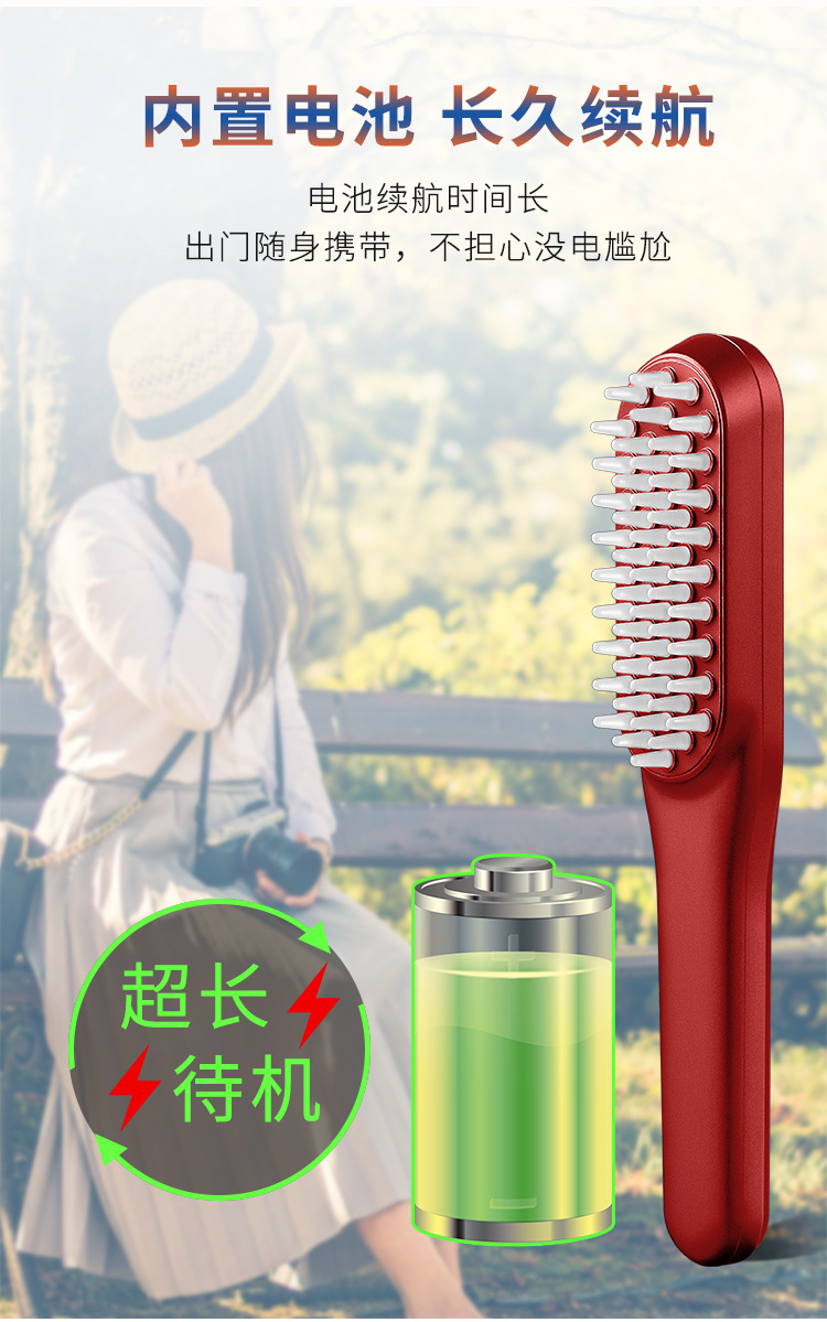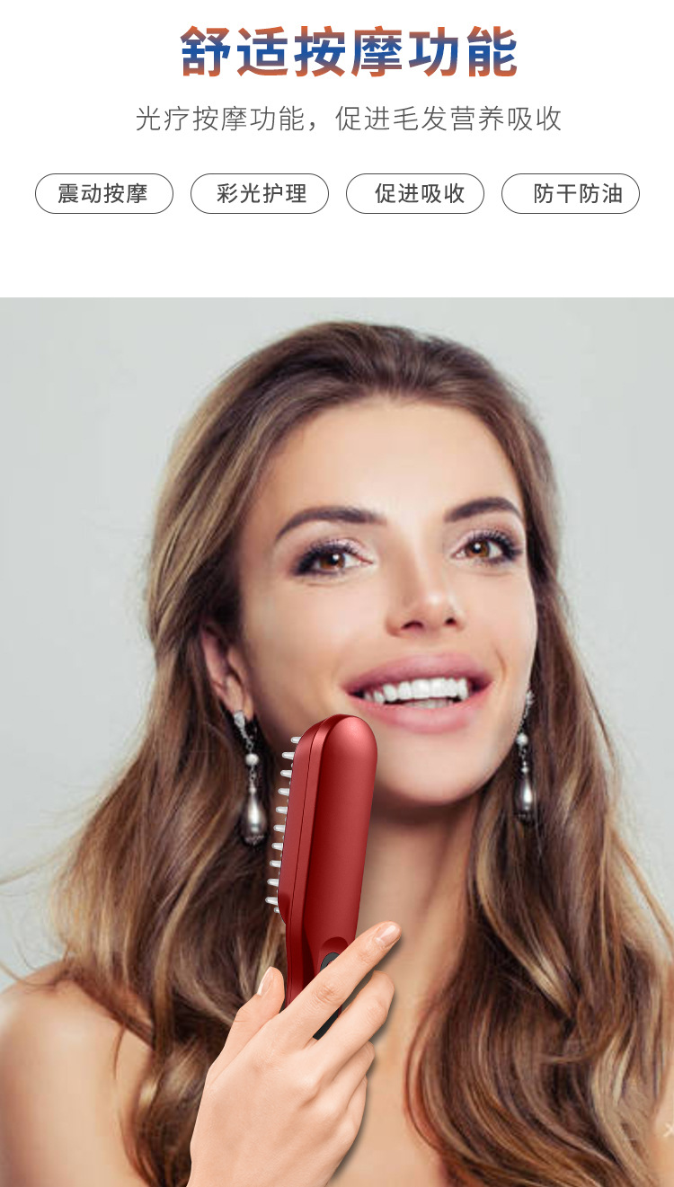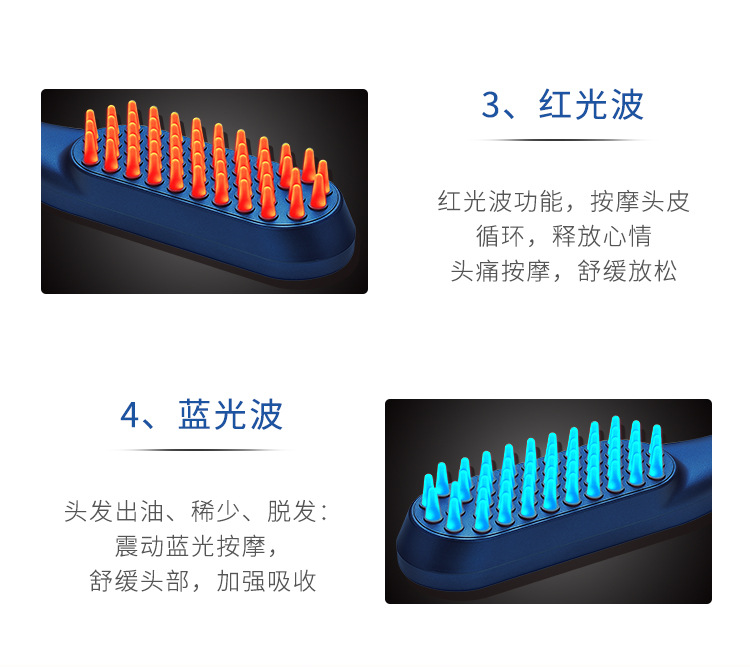 2,红/蓝光疗,减少头发出油,内置锂电池,电量持久续航。