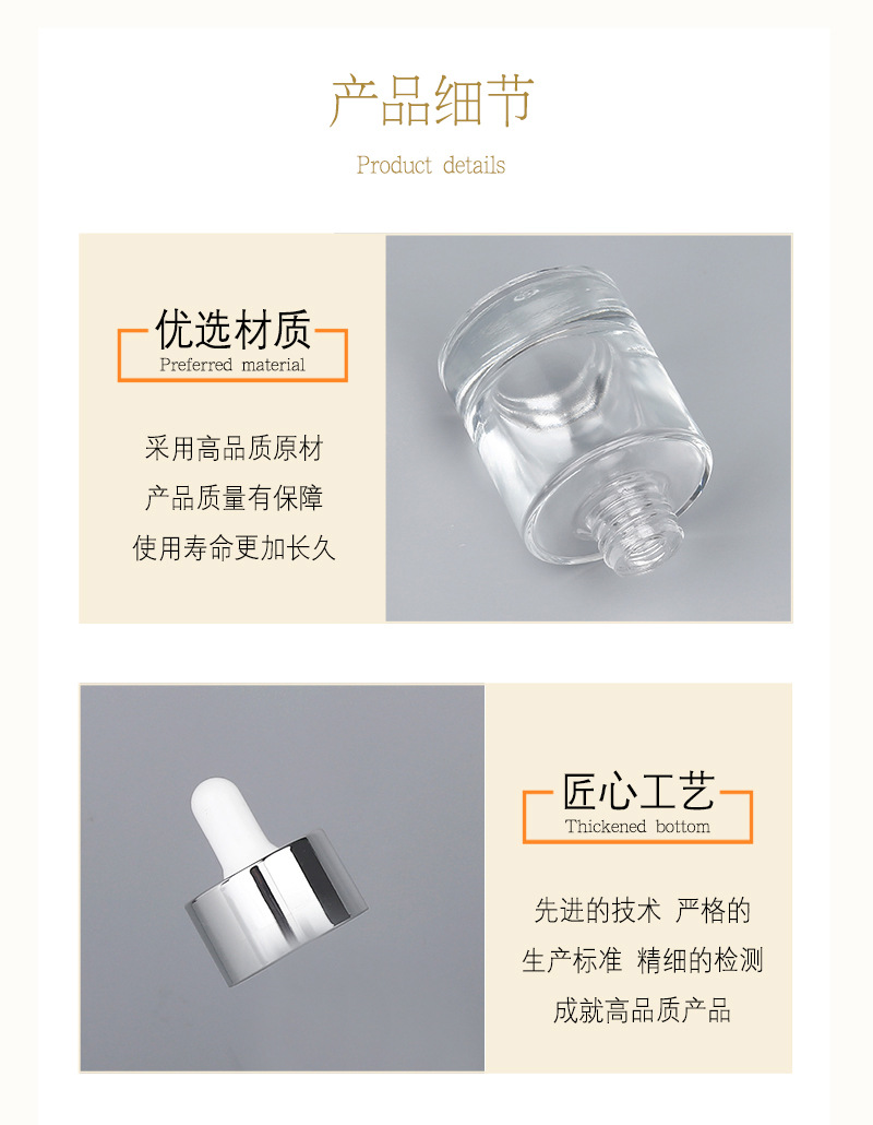 现货50ml直圆厚底精油瓶 透明圆柱平肩滴管瓶 化妆品玻璃瓶