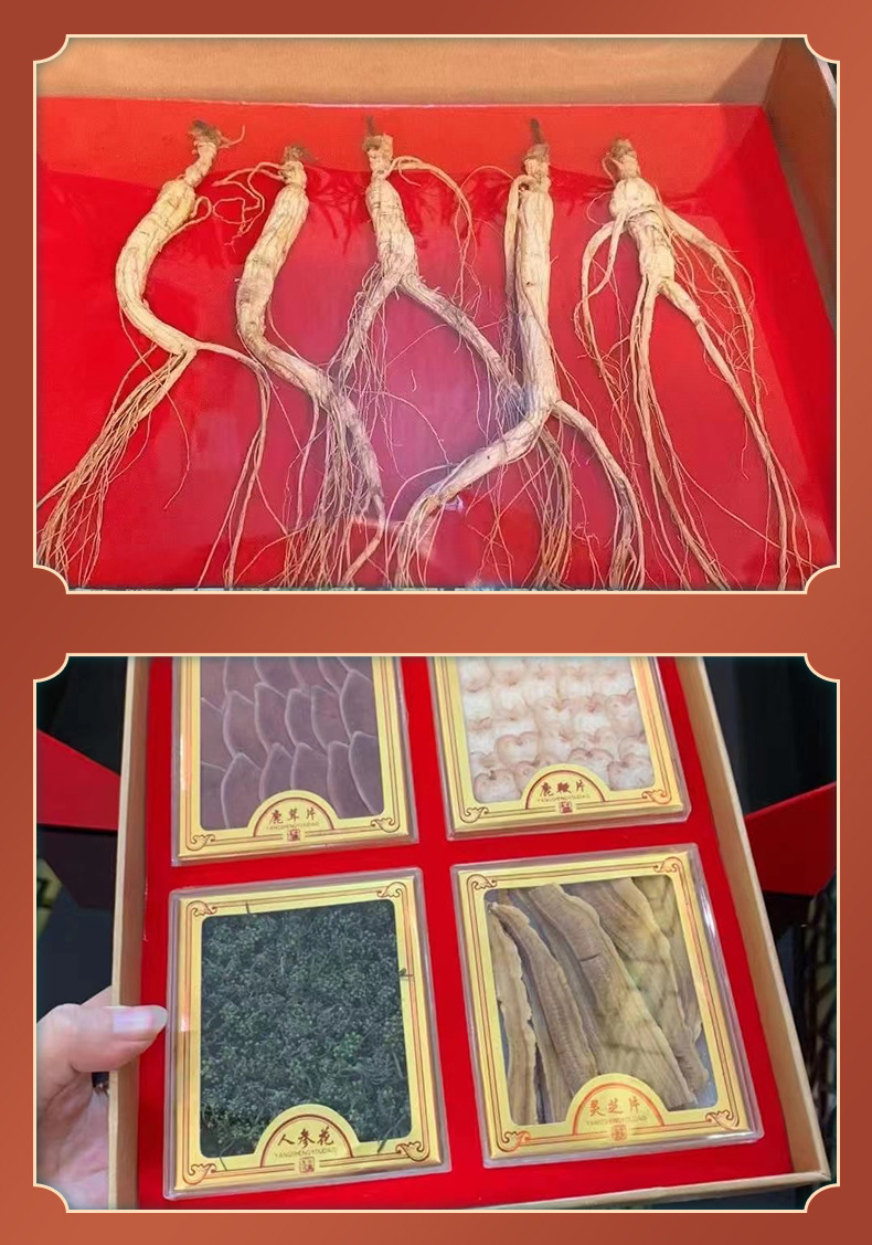 人参五只 鹿茸 红参 人参花 鹿鞭