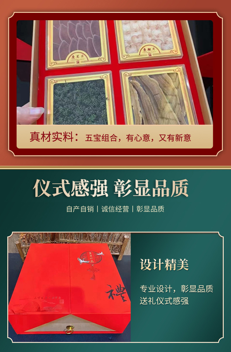 吉林长白山特产人参鹿茸鹿鞭礼盒双层五宝礼盒送长辈过节伴手礼
