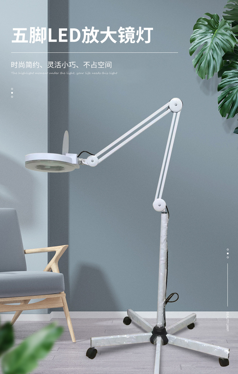 现货批发五脚冷光灯美容院纹眉睫毛嫁接落地式LED放大镜照明灯