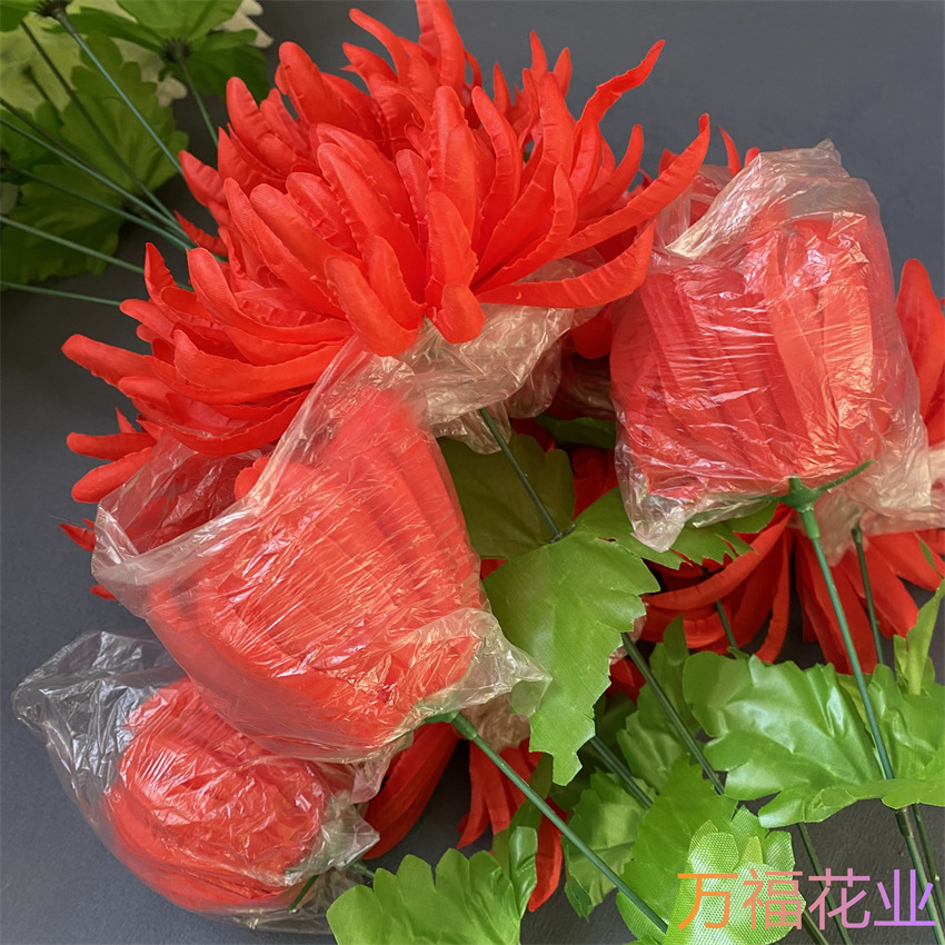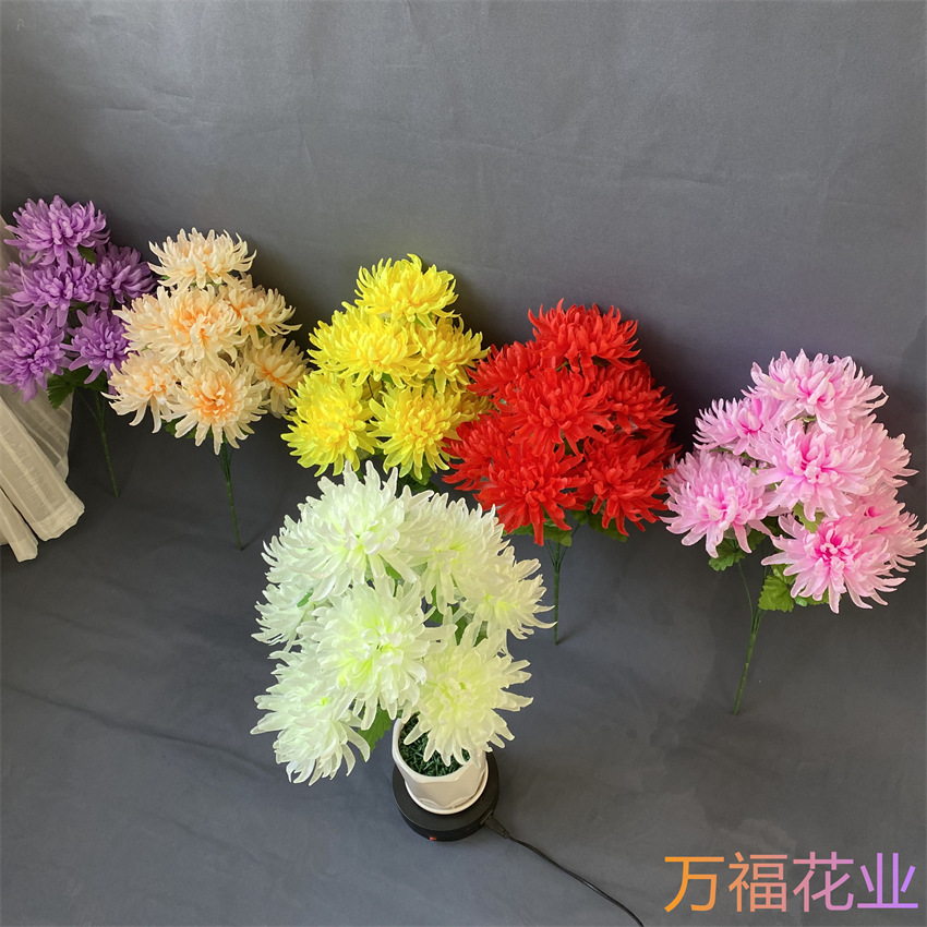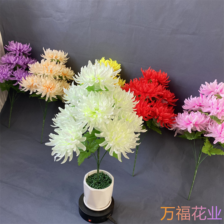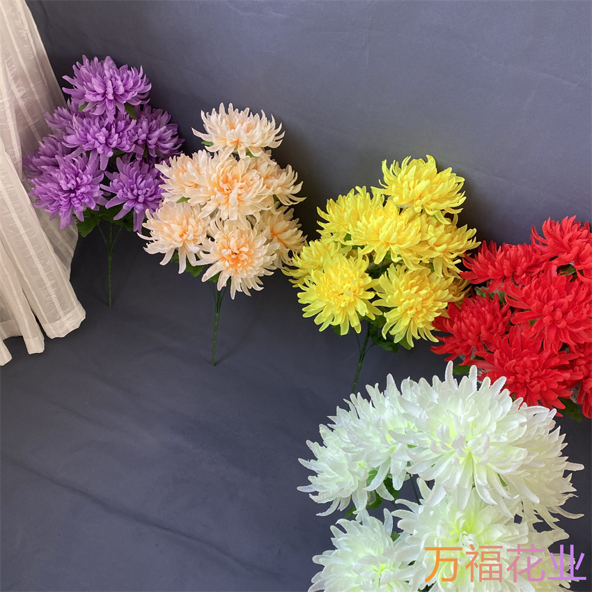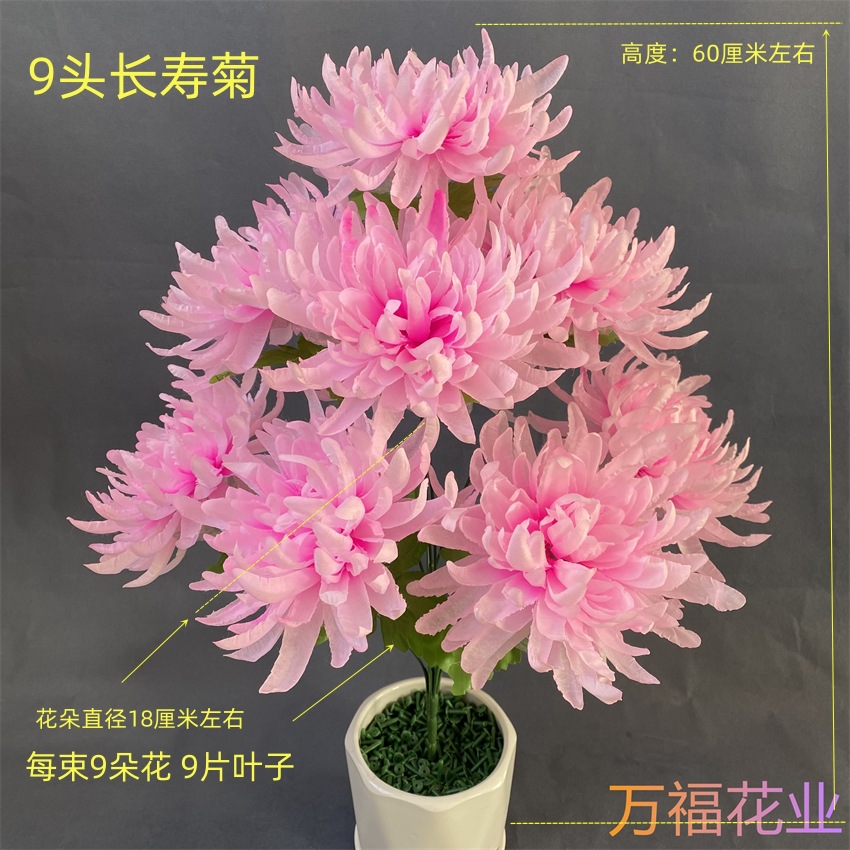 9头大号长寿菊仿真菊花绢花波斯菊龙爪菊清明花仿真花批发混色款