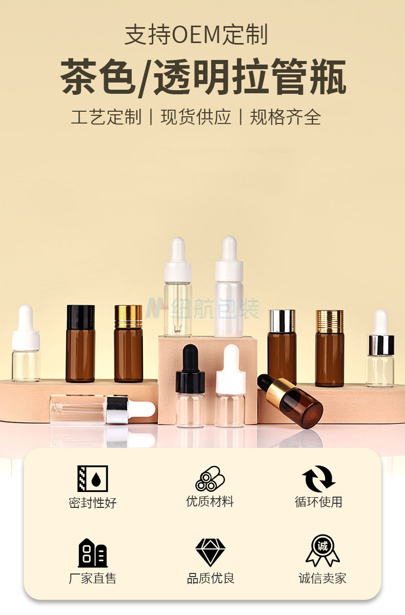 推荐理由:适用于茶色拉管瓶,分装瓶,精华液瓶,试用装瓶